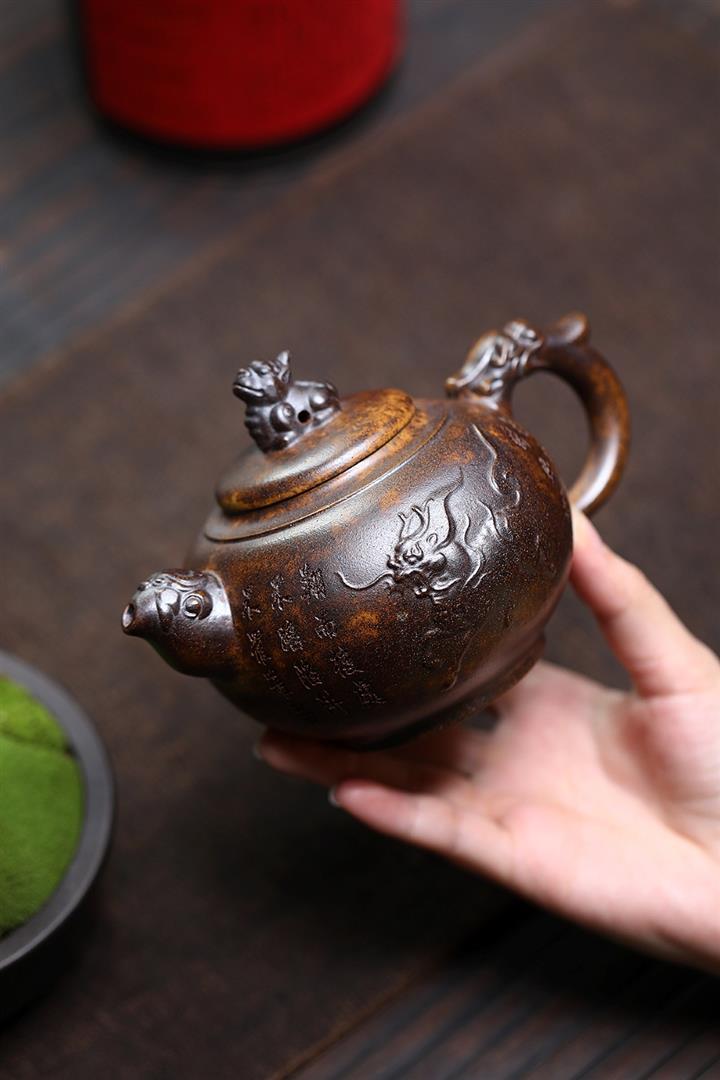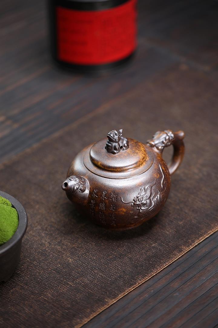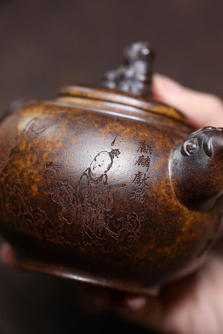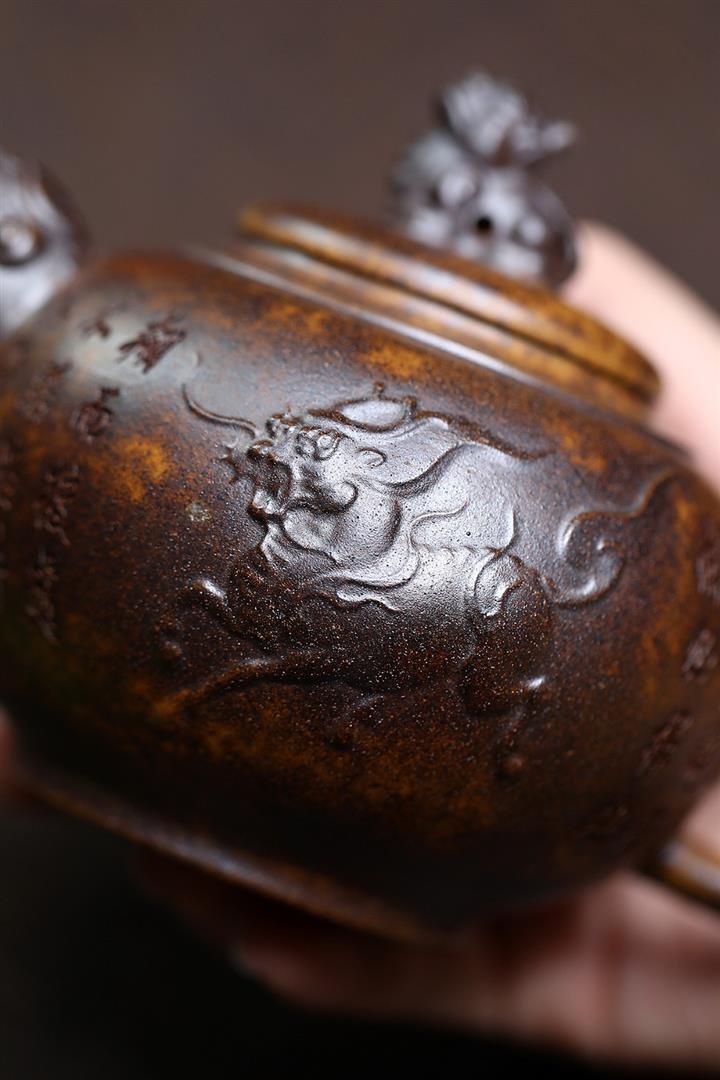 350cc原礦段泥高溫燒燒麒麟獻瑞茶壺POT8164