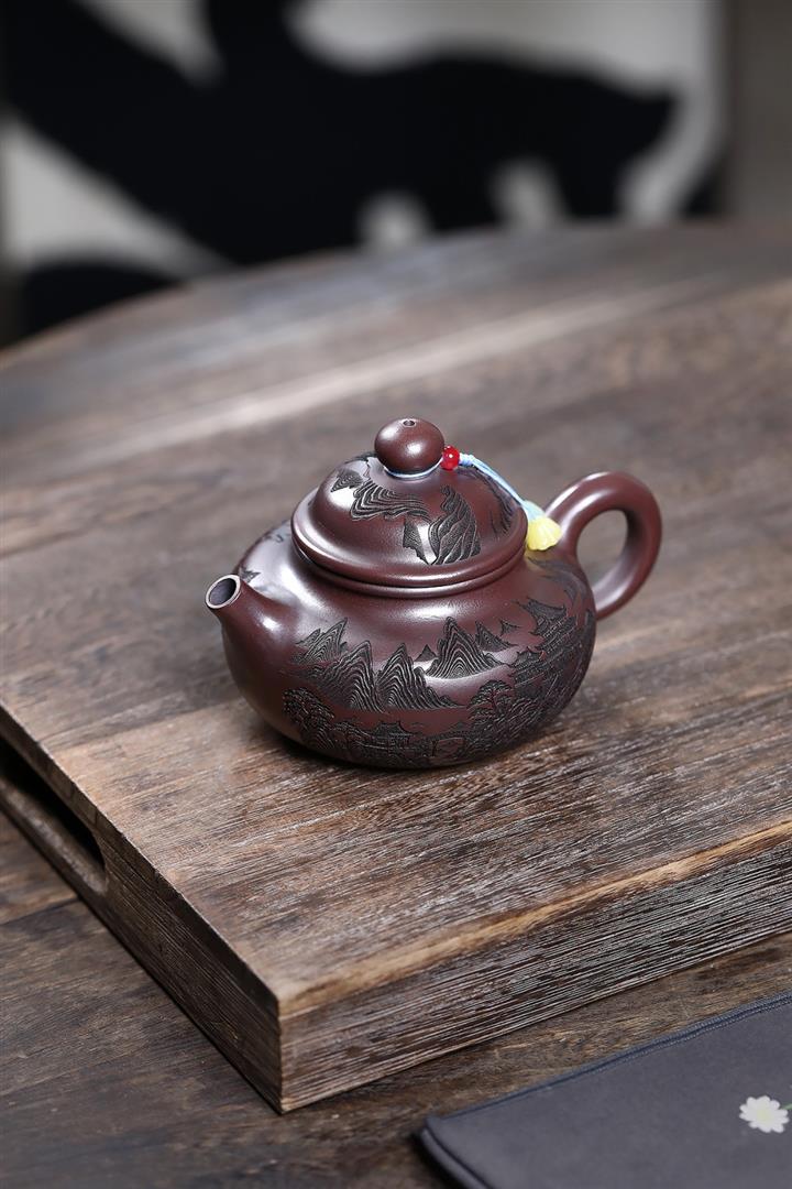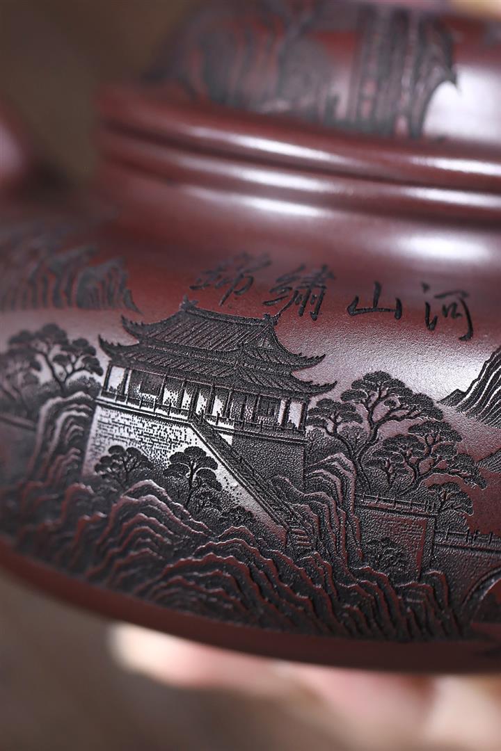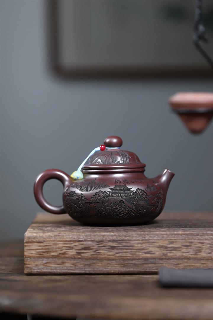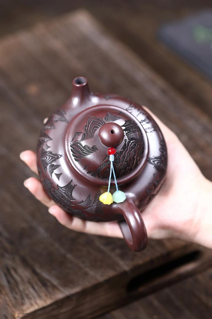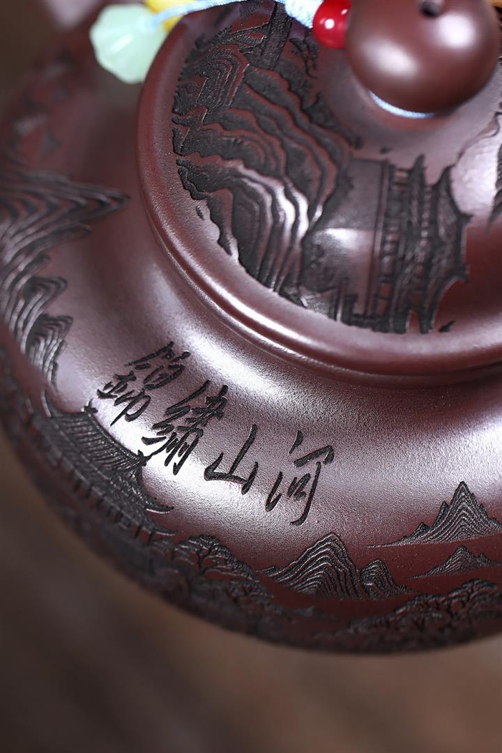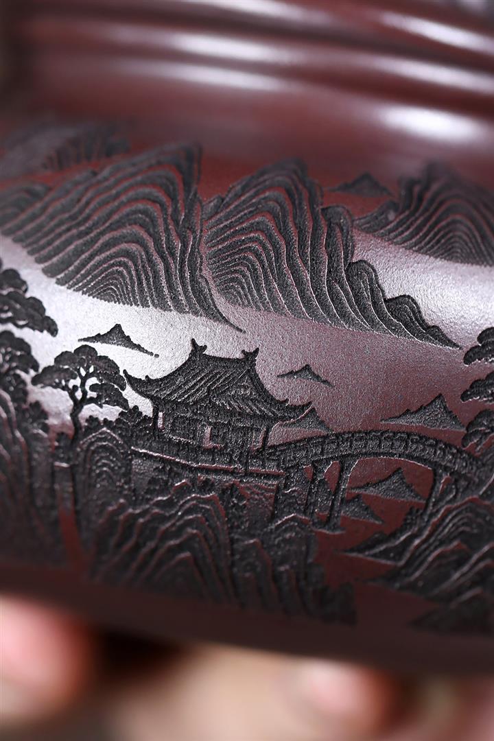 300cc原礦古銅泥滿刻萬象涵容茶壺POT8165