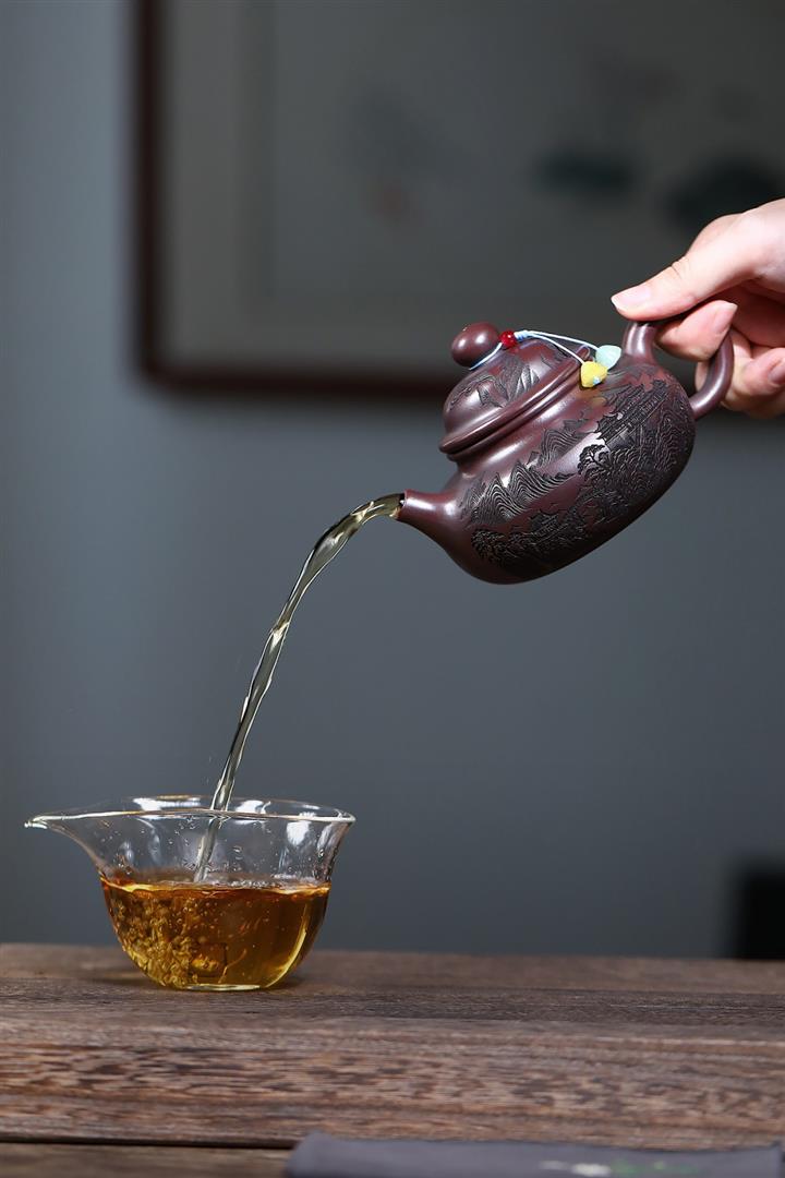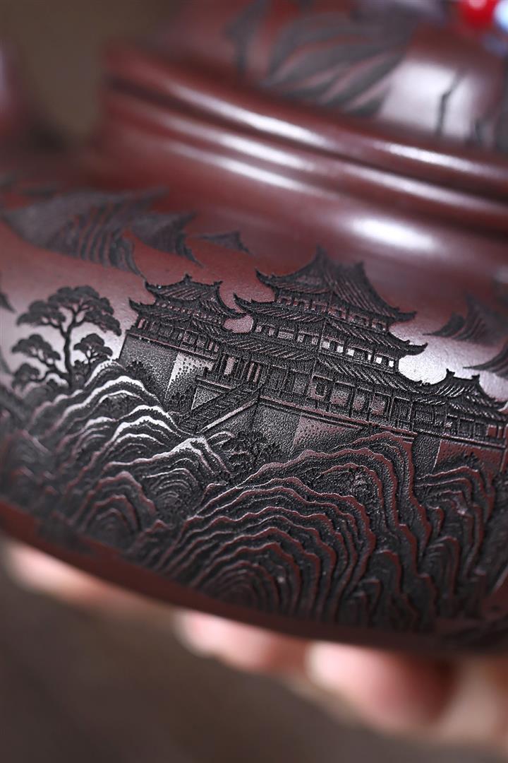 原礦冷黃金純手工刻繪周盤壺POT6758
