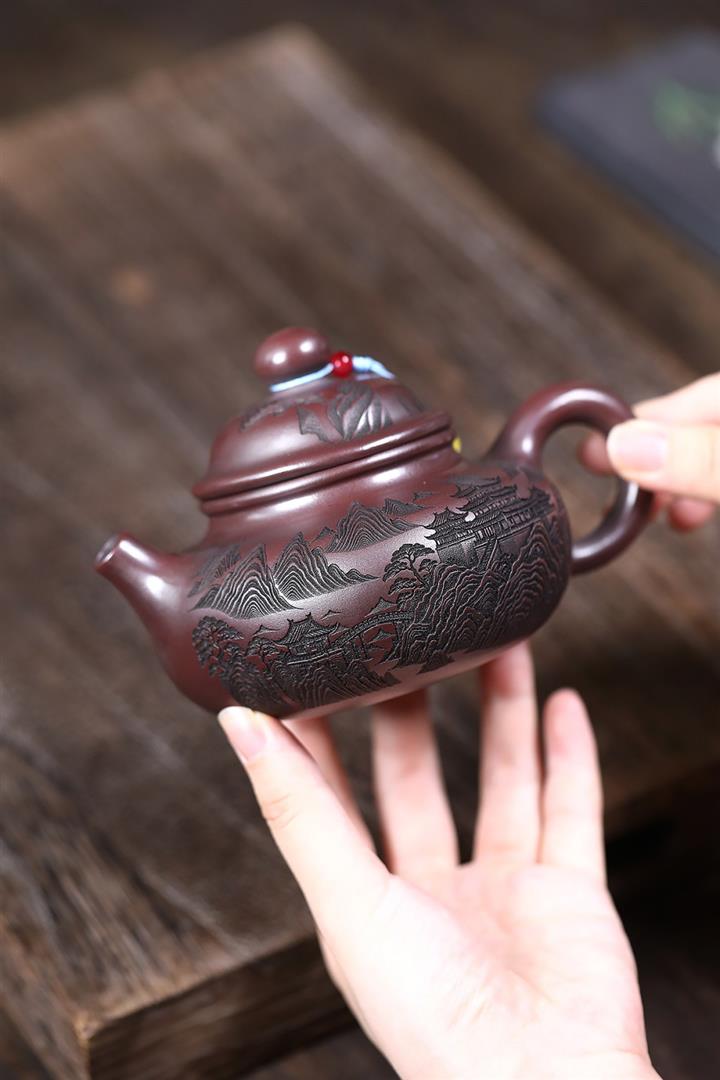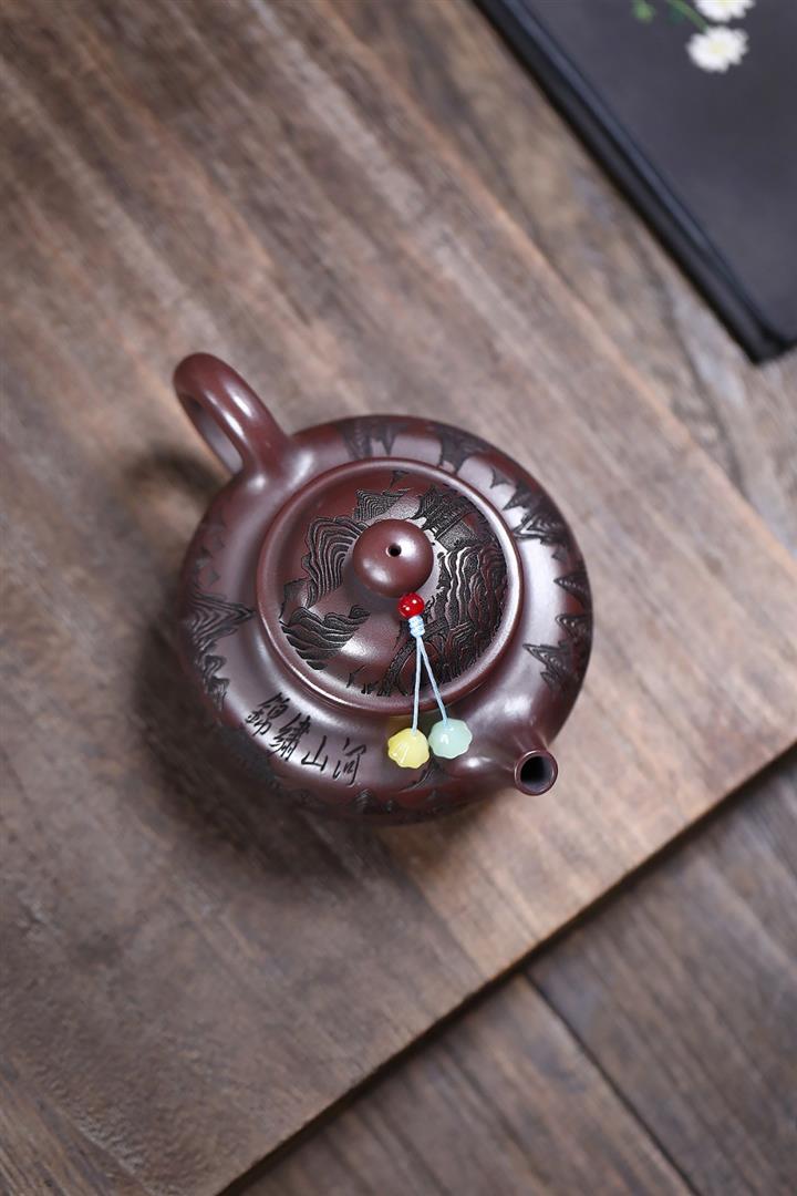 原礦龍血砂手工側把扁腹茶壺POT6750