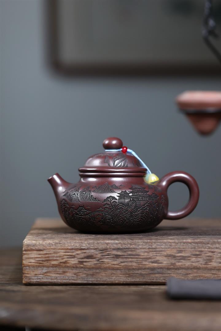 【作品介紹】此款壺形線條流暢,壺把,壺嘴,壺身壹氣呵成栩栩如生,是收藏把玩的好壺,泥料色澤古樸典雅,日久使用,漸露鋒芒,養成變化快,溫潤莊重,用其泡茶,使用的年代久,壺身就溫潤,泡出來的茶湯也就醇郁芳馨。