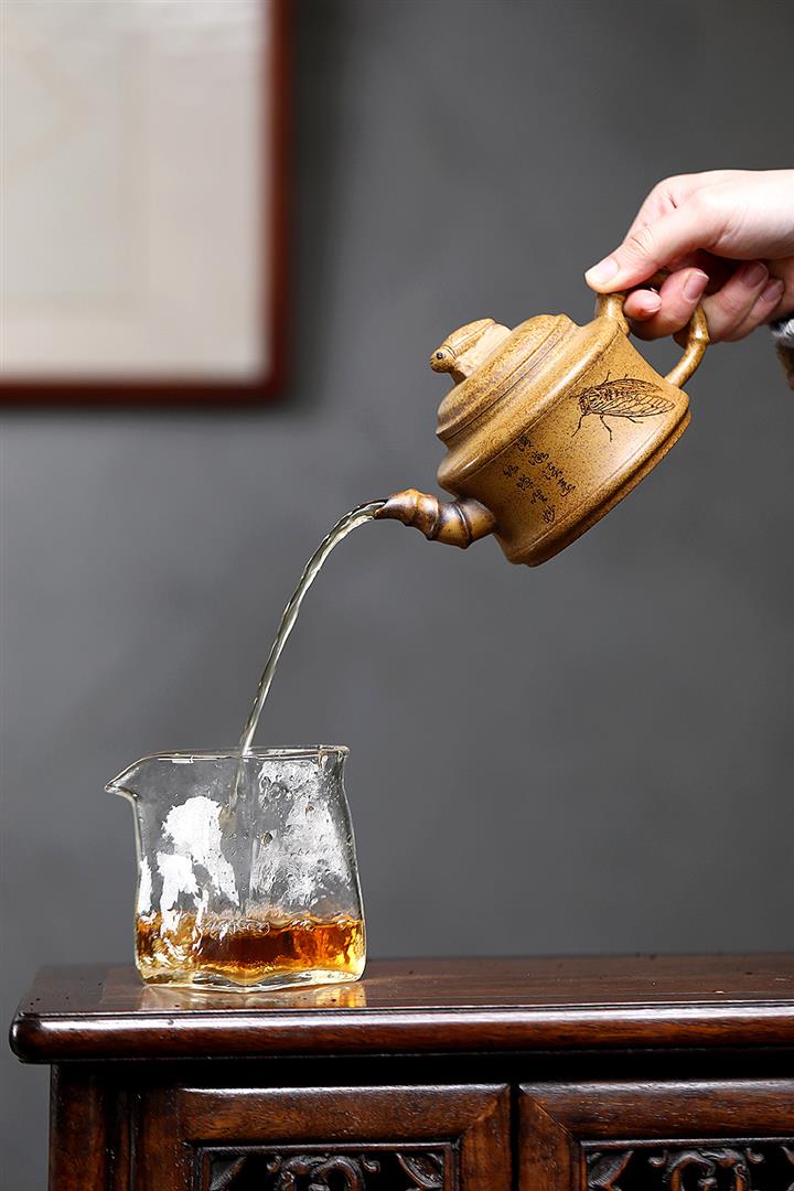 【泥料特點】砂土氣重,似淳實農民,日久使用,漸露鋒芒,養成變化,溫潤莊重。紫砂是壹種雙重氣孔結構的多孔性材質,氣孔微細,密度高。用紫砂壺沏茶,不失原味,且香不渙散,得茶之真香真味。紫砂使用越久,壺身色澤越發光亮照人,氣韻溫雅。紫砂壺長久使用器身會因撫摸擦拭,變得越發溫潤光澤。