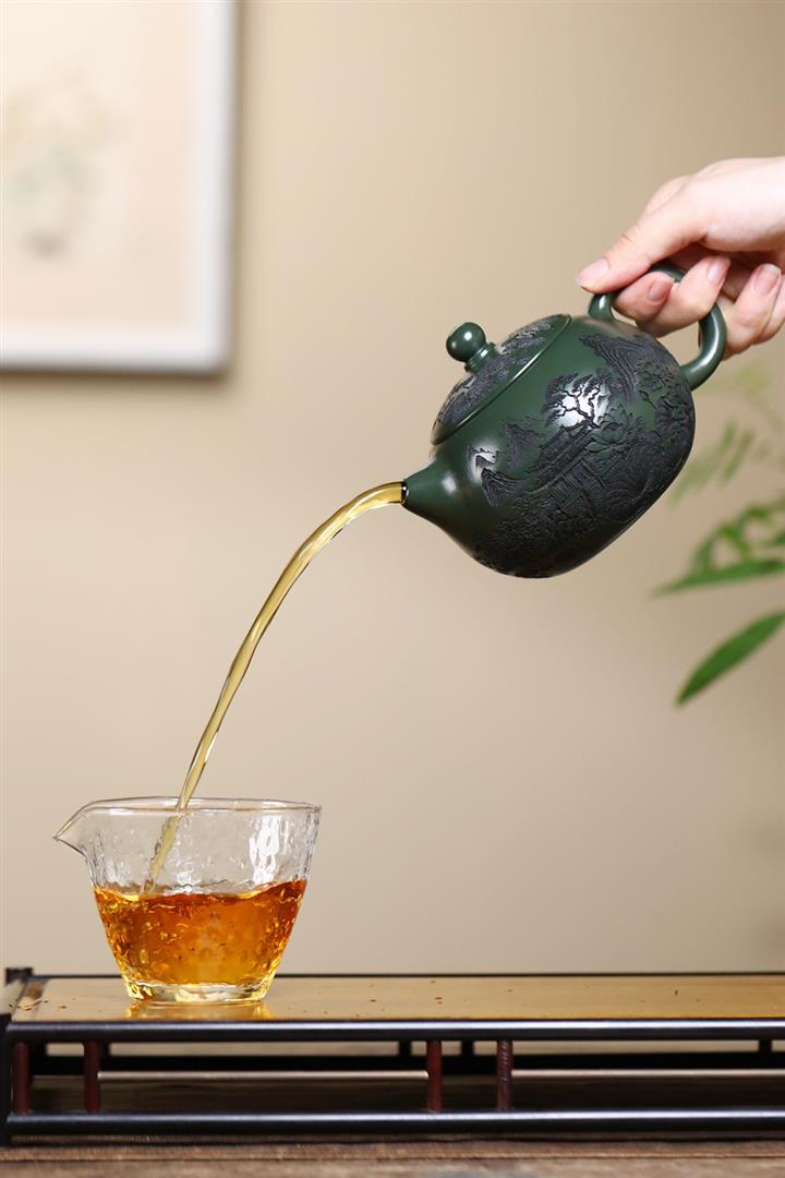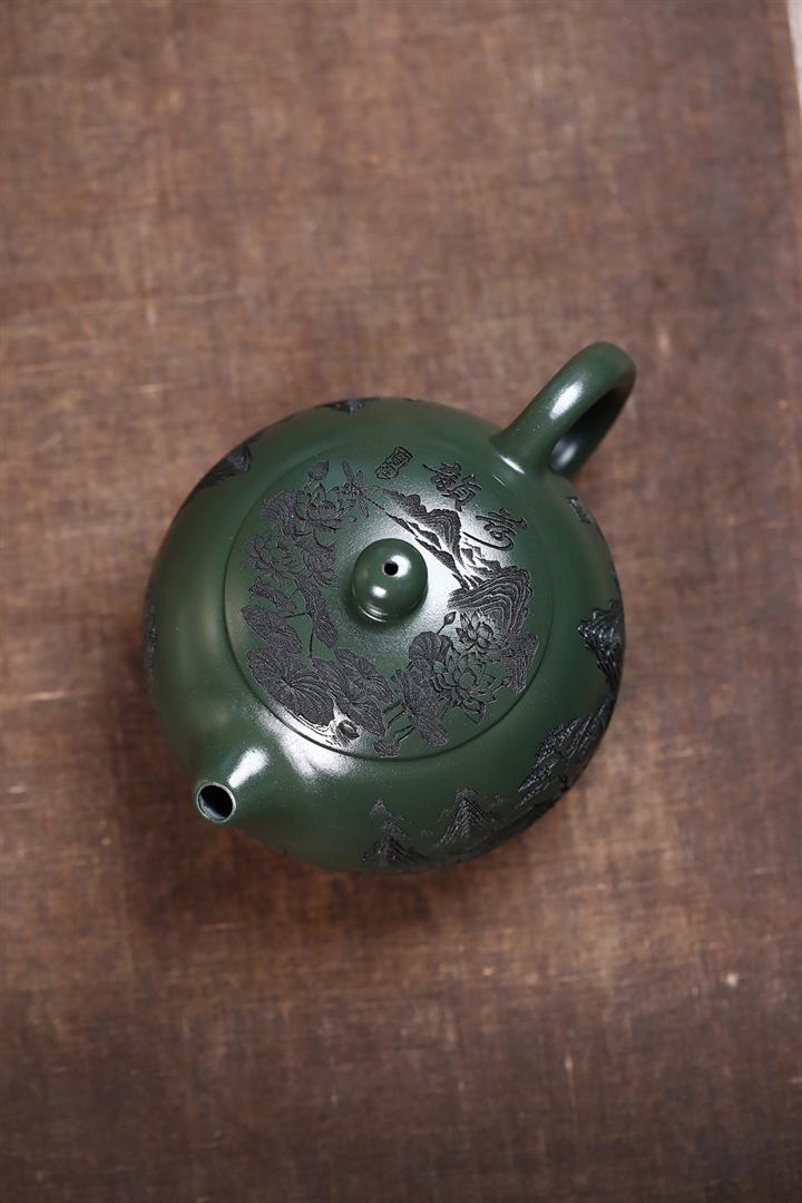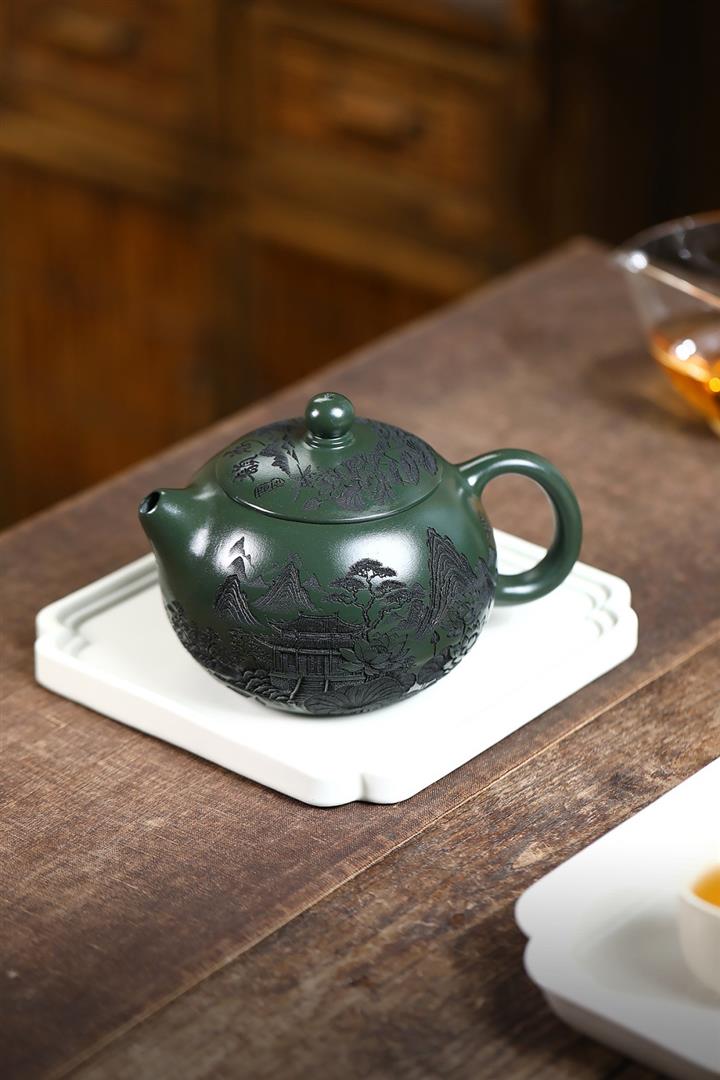 350cc原礦翡翠綠泥通身刻繪竹段茶壺POT9047