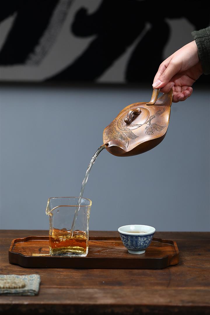 【泥料特點】砂土氣重,似淳實農民,日久使用,漸露鋒芒,養成變化,溫潤莊重。紫砂是壹種雙重氣孔結構的多孔性材質,氣孔微細,密度高。用紫砂壺沏茶,不失原味,且香不渙散,得茶之真香真味。紫砂使用越久,壺身色澤越發光亮照人,氣韻溫雅。紫砂壺長久使用器身會因撫摸擦拭,變得越發溫潤光澤。