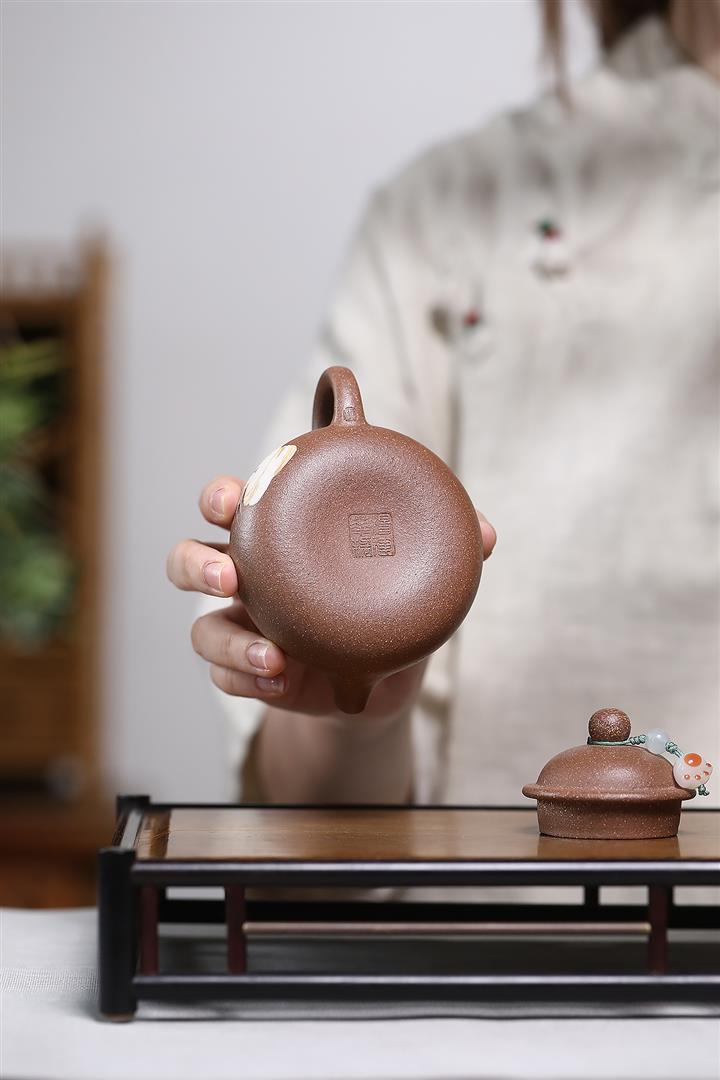 【泥料特點】砂土氣重,似淳實農民,日久使用,漸露鋒芒,養成變化,溫潤莊重。紫砂是壹種雙重氣孔結構的多孔性材質,氣孔微細,密度高。用紫砂壺沏茶,不失原味,且香不渙散,得茶之真香真味。紫砂使用越久,壺身色澤越發光亮照人,氣韻溫雅。紫砂壺長久使用器身會因撫摸擦拭,變得越發溫潤光澤。