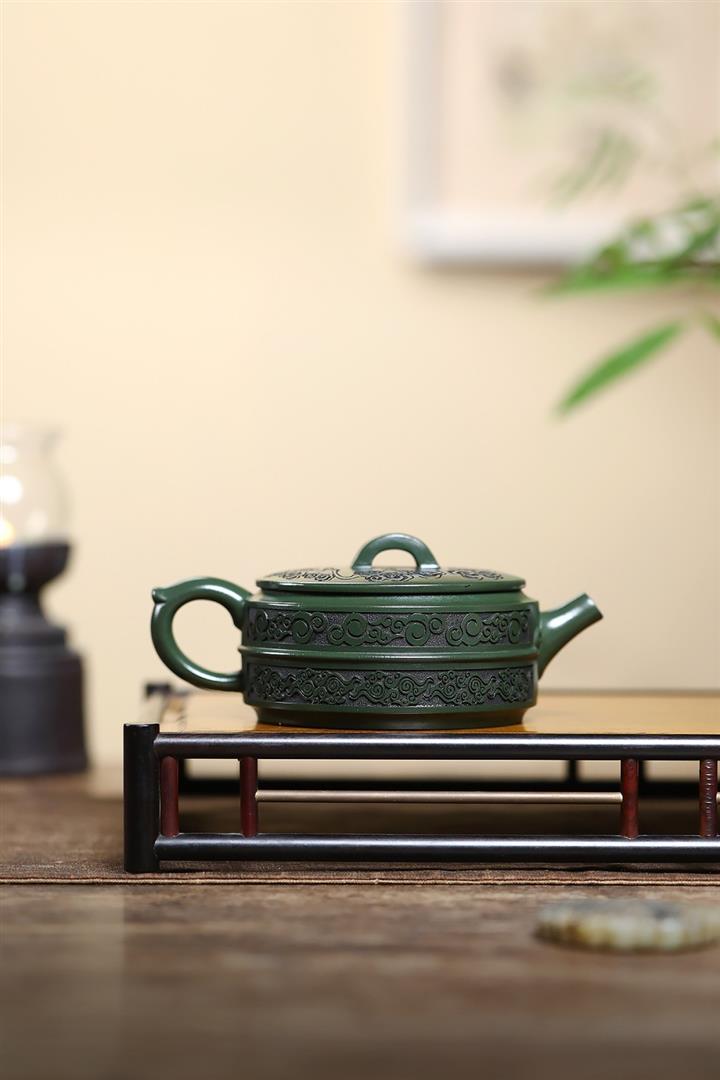 260cc原礦綠泥滿刻大聖雲藏漢瓦茶壺POT8243