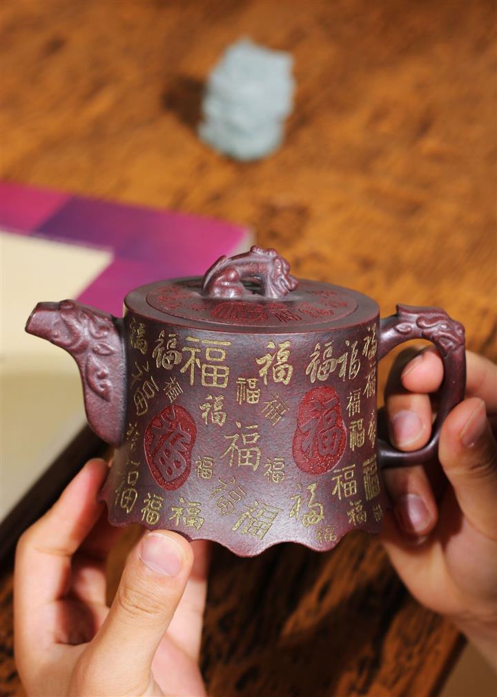 【作品介紹】此款壺形線條流暢,壺把,壺嘴,壺身壹氣呵成栩栩如生,是收藏把玩的好壺,泥料色澤古樸典雅,日久使用,漸露鋒芒,養成變化快,溫潤莊重,用其泡茶,使用的年代久,壺身就溫潤,泡出來的茶湯也就醇郁芳馨。