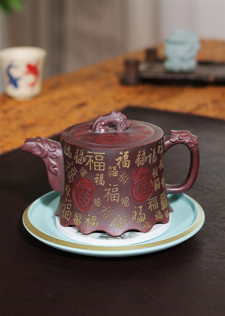 【泥料特點】砂土氣重,似淳實農民,日久使用,漸露鋒芒,養成變化,溫潤莊重。紫砂是壹種雙重氣孔結構的多孔性材質,氣孔微細,密度高。用紫砂壺沏茶,不失原味,且香不渙散,得茶之真香真味。紫砂使用越久,壺身色澤越發光亮照人,氣韻溫雅。紫砂壺長久使用器身會因撫摸擦拭,變得越發溫潤光澤。