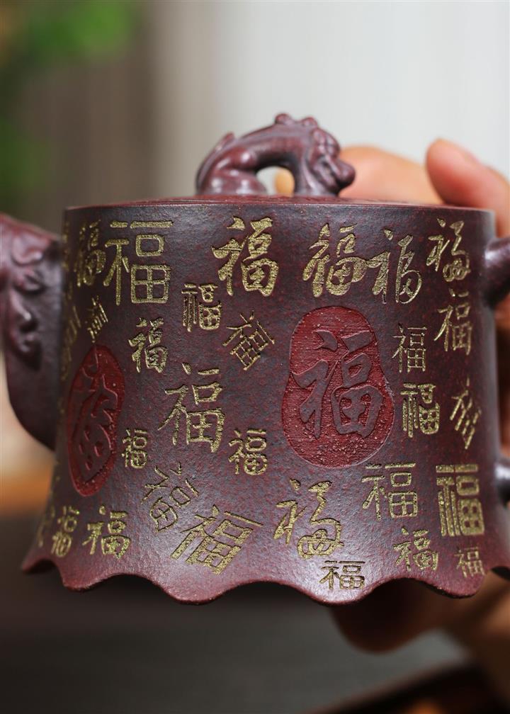 330cc古銅泥變色描金百福金鐘茶壺POT8244