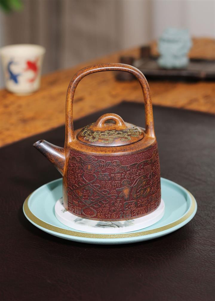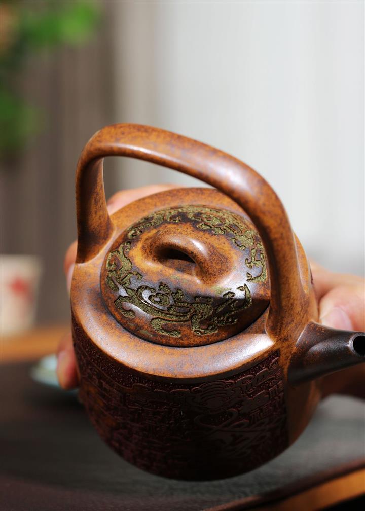 290cc龍骨金砂變色鳳鳴百福古秦權提梁壺POT8245