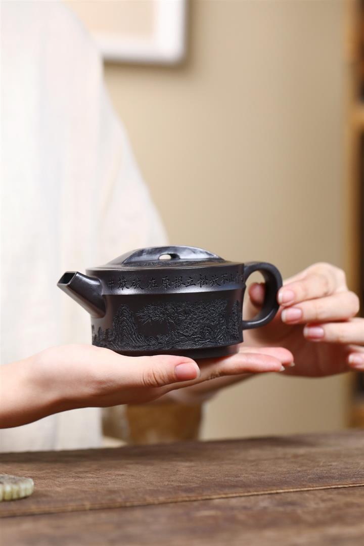 原礦沈香泥柴燒花鳥方尊茶壺POT7693