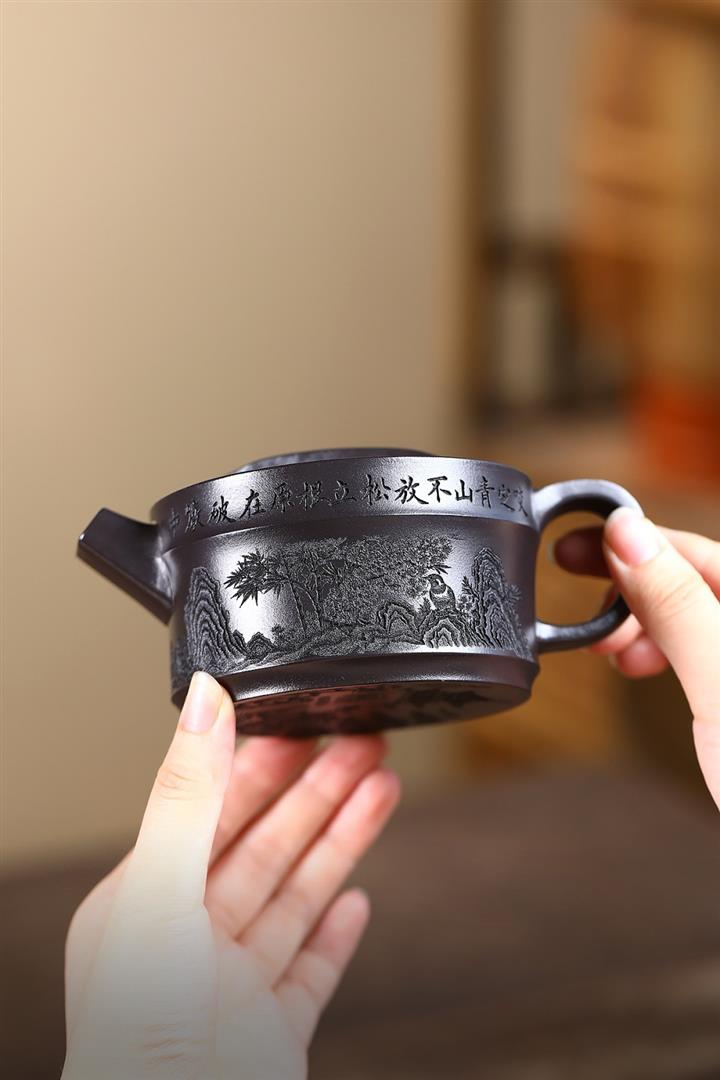 【作品介紹】此款壺形線條流暢,壺把,壺嘴,壺身壹氣呵成栩栩如生,是收藏把玩的好壺,泥料色澤古樸典雅,日久使用,漸露鋒芒,養成變化快,溫潤莊重,用其泡茶,使用的年代久,壺身就溫潤,泡出來的茶湯也就醇郁芳馨。