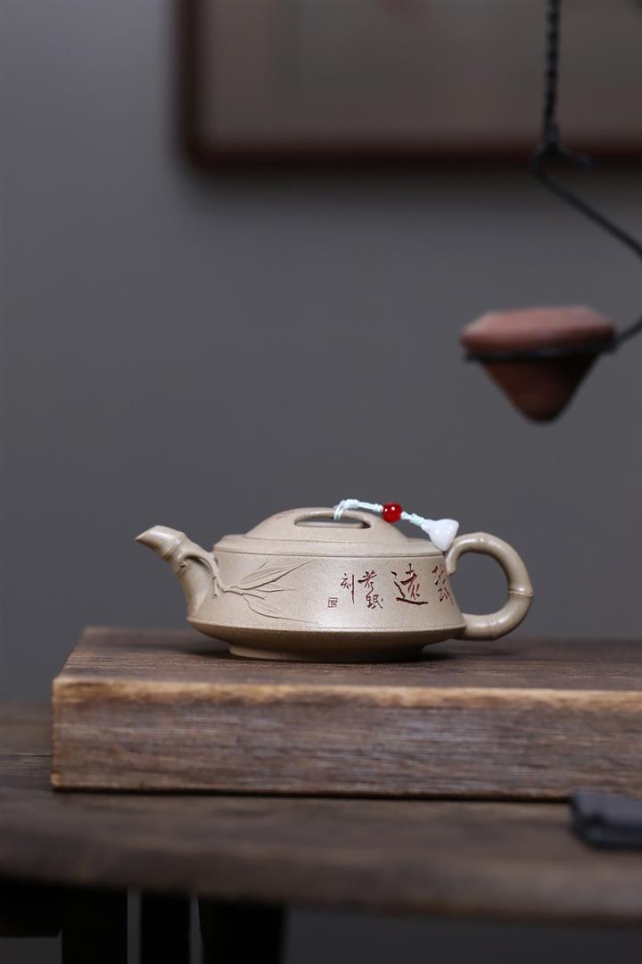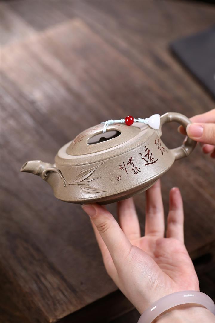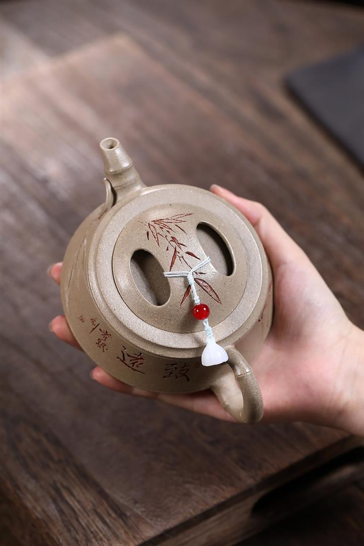 【作品介紹】此款壺形線條流暢,壺把,壺嘴,壺身壹氣呵成栩栩如生,是收藏把玩的好壺,泥料色澤古樸典雅,日久使用,漸露鋒芒,養成變化快,溫潤莊重,用其泡茶,使用的年代久,壺身就溫潤,泡出來的茶湯也就醇郁芳馨。