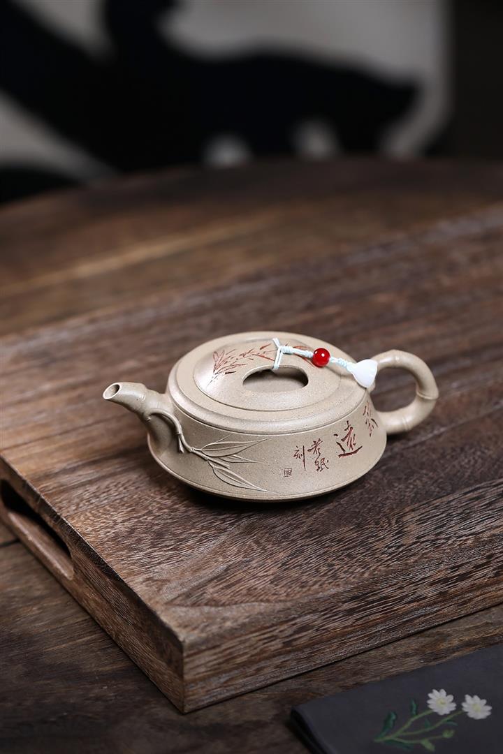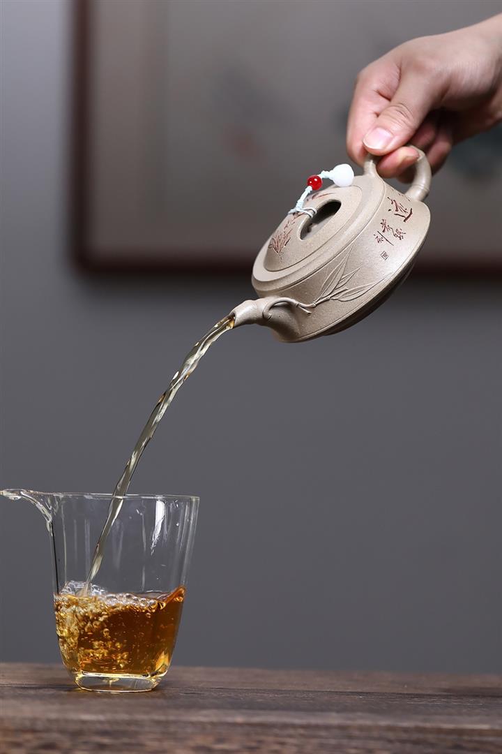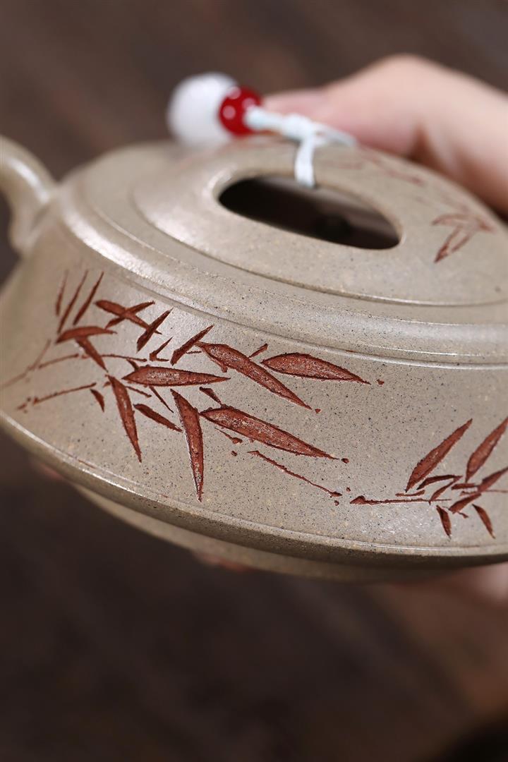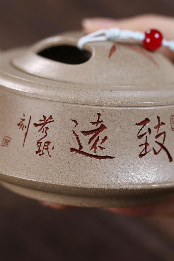 【泥料特點】砂土氣重,似淳實農民,日久使用,漸露鋒芒,養成變化,溫潤莊重。紫砂是壹種雙重氣孔結構的多孔性材質,氣孔微細,密度高。用紫砂壺沏茶,不失原味,且香不渙散,得茶之真香真味。紫砂使用越久,壺身色澤越發光亮照人,氣韻溫雅。紫砂壺長久使用器身會因撫摸擦拭,變得越發溫潤光澤。