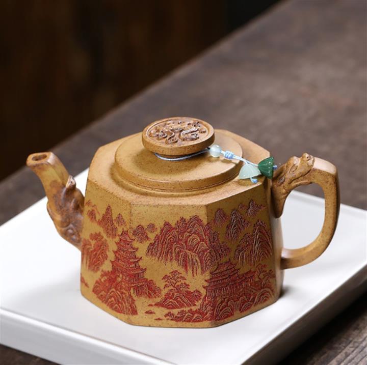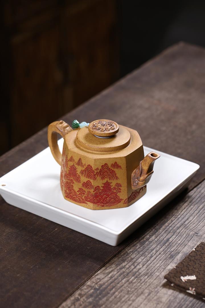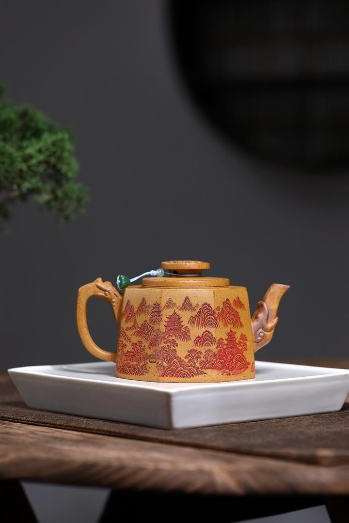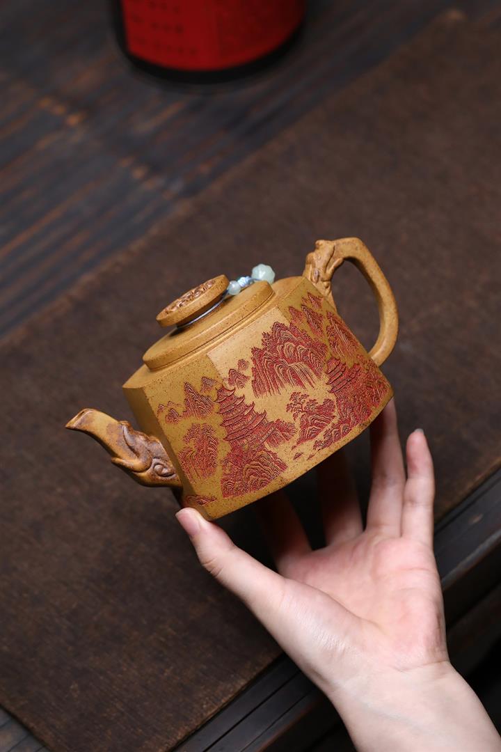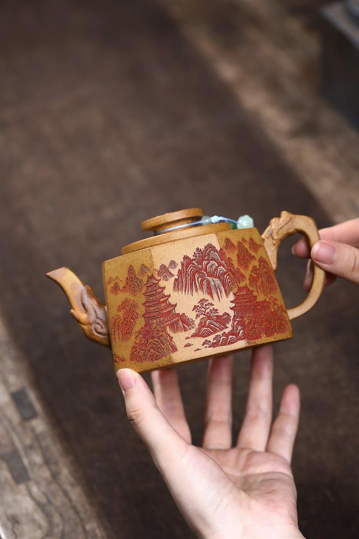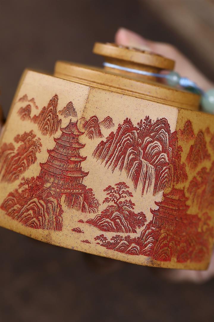龍血砂匠心手製刻繪漢瓦紫砂壺POT6472