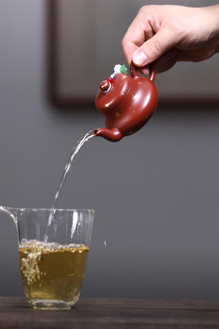 【泥料特點】砂土氣重,似淳實農民,日久使用,漸露鋒芒,養成變化,溫潤莊重。紫砂是壹種雙重氣孔結構的多孔性材質,氣孔微細,密度高。用紫砂壺沏茶,不失原味,且香不渙散,得茶之真香真味。紫砂使用越久,壺身色澤越發光亮照人,氣韻溫雅。紫砂壺長久使用器身會因撫摸擦拭,變得越發溫潤光澤。