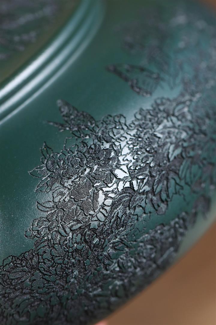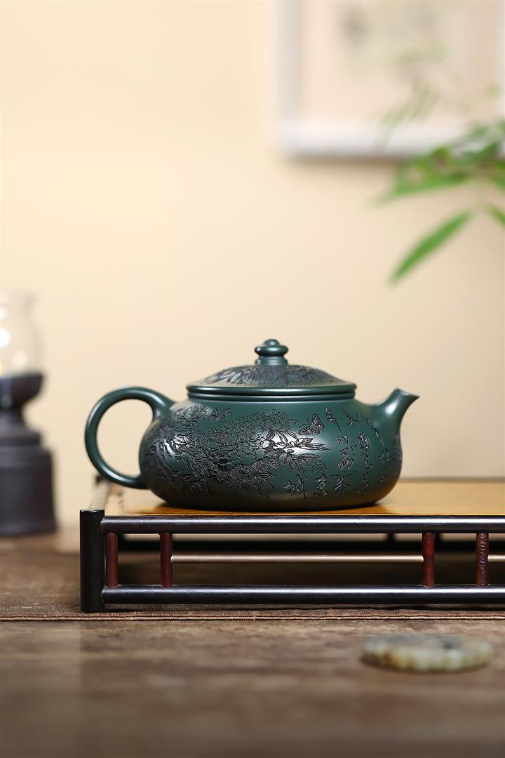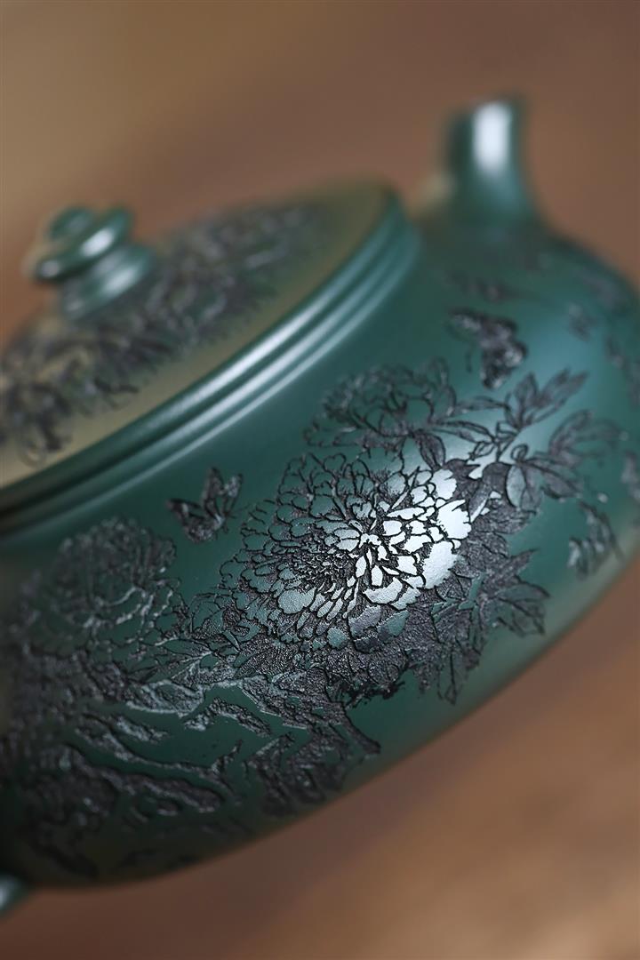 520cc翡翠綠泥花開富貴牡丹寒江茶壺POT8281