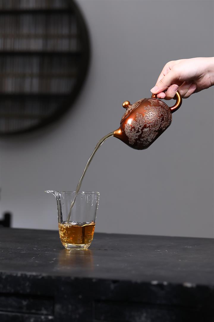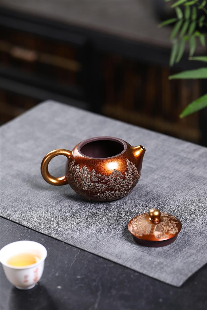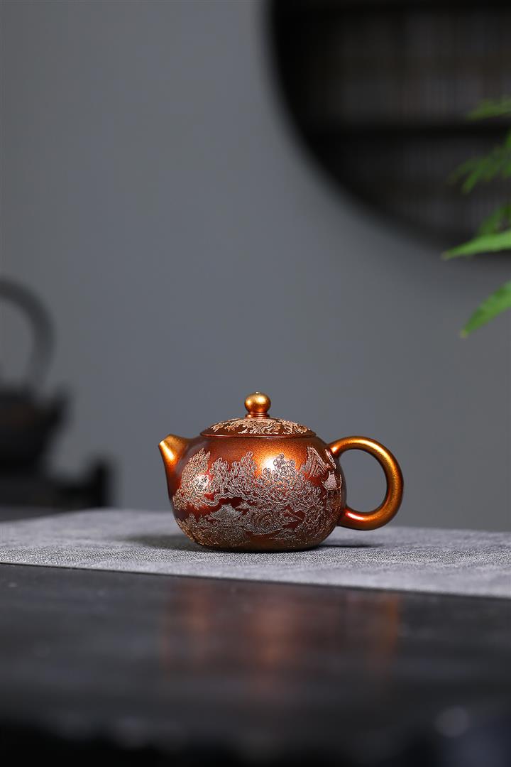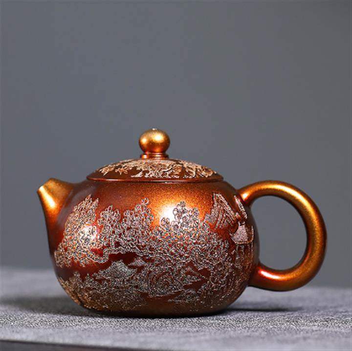 630cc原礦古銅泥滿刻百鳥朝鳳茶壺POT7969