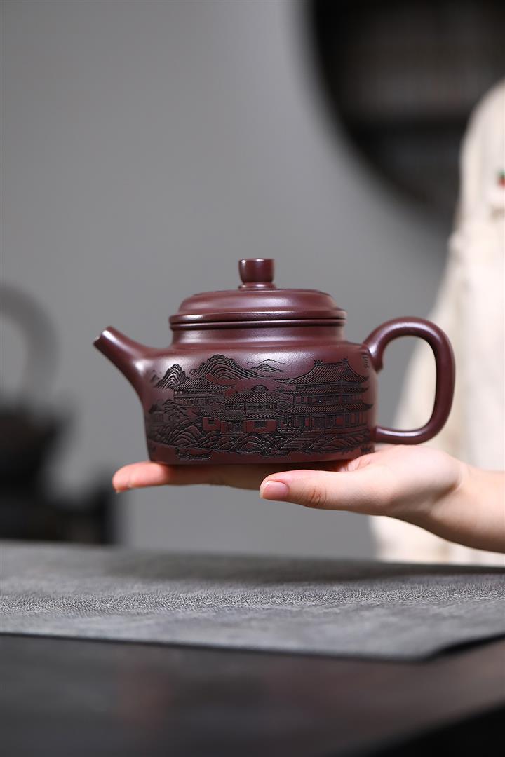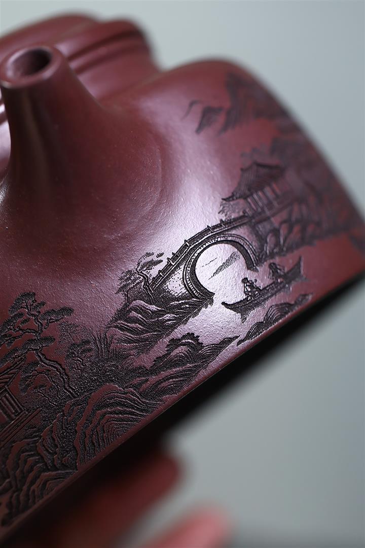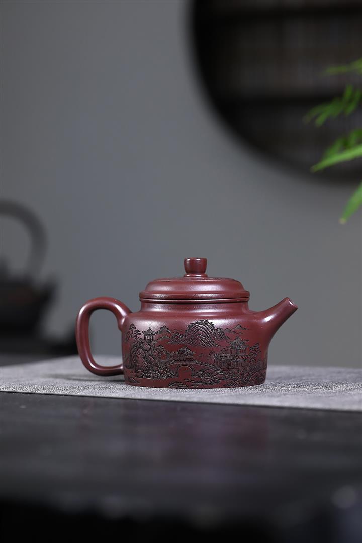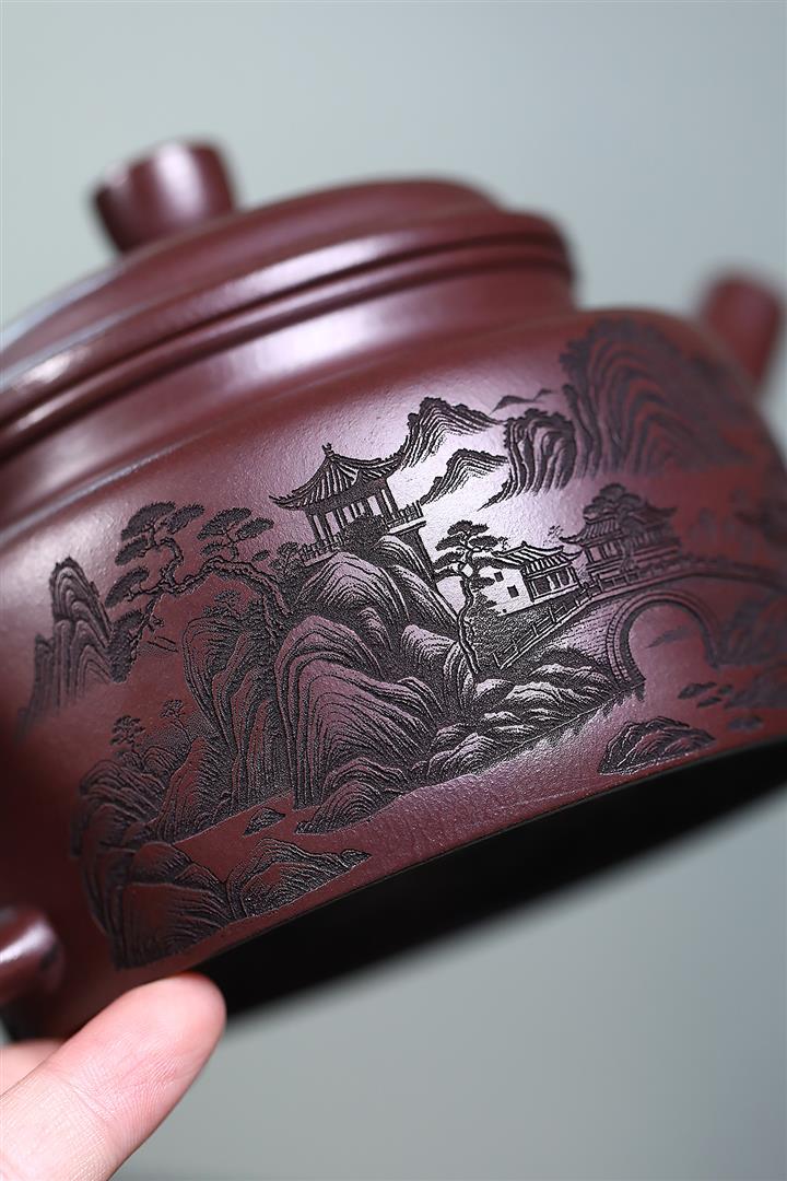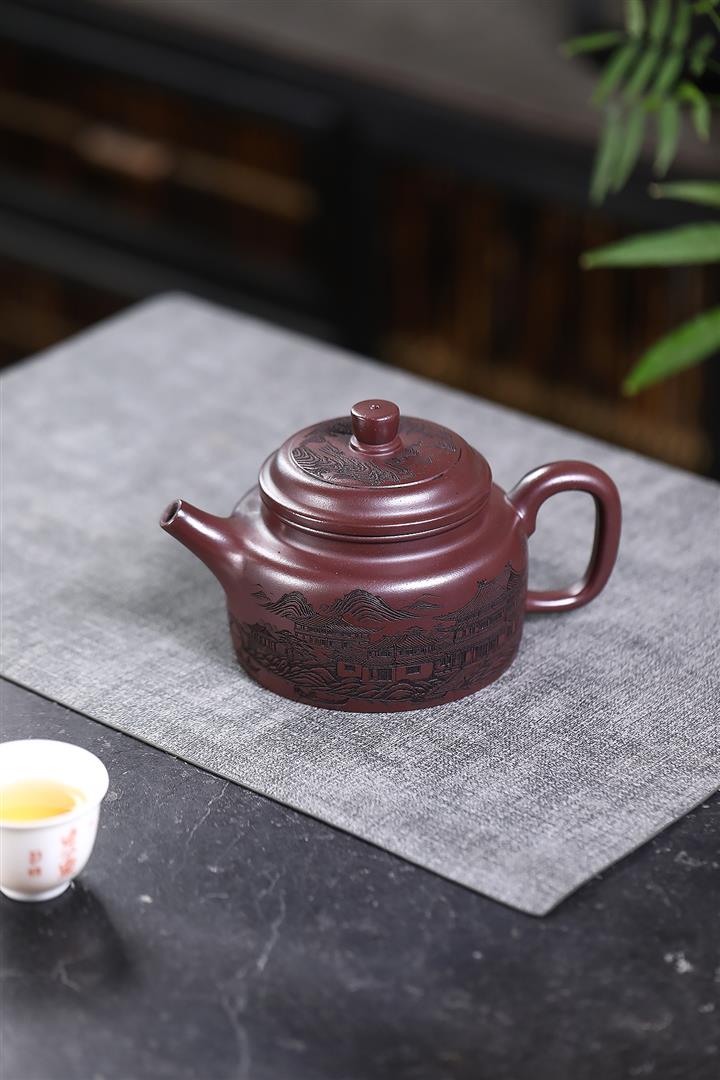 660cc原礦石紅泥滿刻山河鶴影茶壺POT8551
