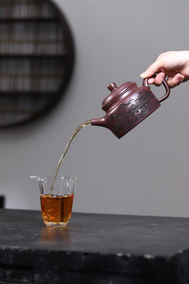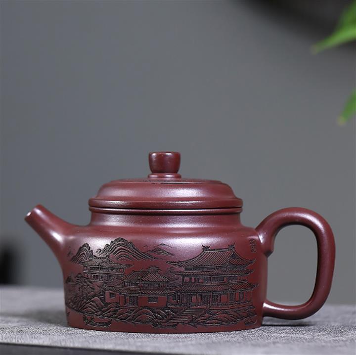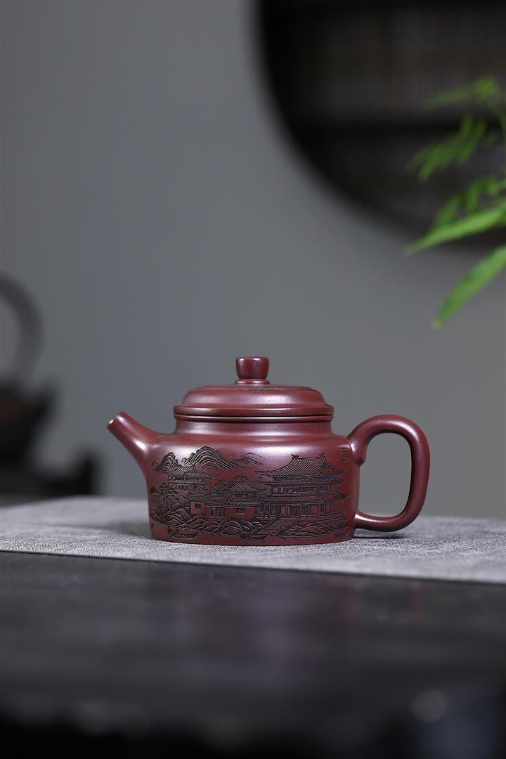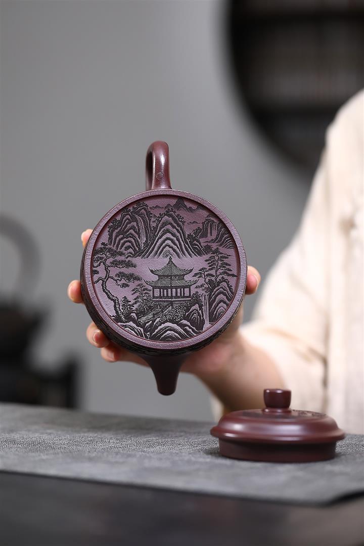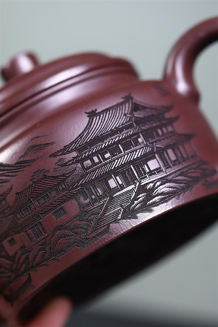 660cc原礦石紅泥滿刻山河鶴影茶壺POT8551
