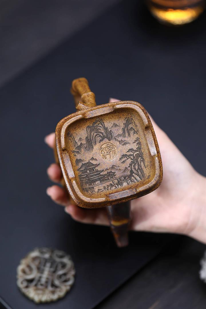 300cc龍骨金砂高溫柴燒四方竹段茶壺POT8292