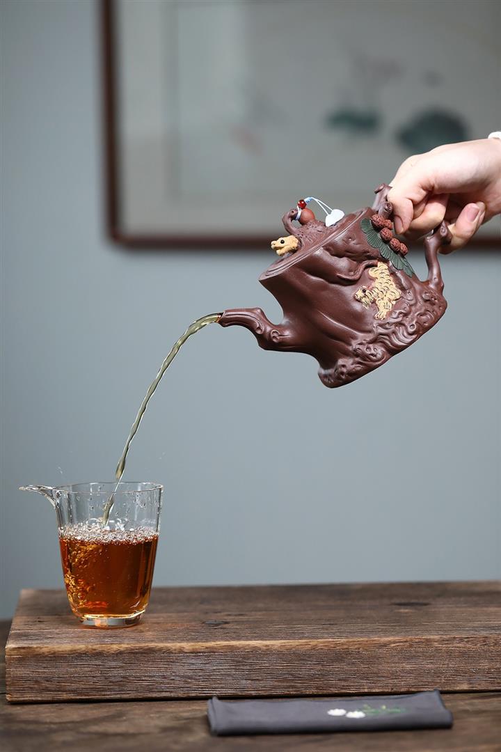 【泥料特點】砂土氣重,似淳實農民,日久使用,漸露鋒芒,養成變化,溫潤莊重。紫砂是壹種雙重氣孔結構的多孔性材質,氣孔微細,密度高。用紫砂壺沏茶,不失原味,且香不渙散,得茶之真香真味。紫砂使用越久,壺身色澤越發光亮照人,氣韻溫雅。紫砂壺長久使用器身會因撫摸擦拭,變得越發溫潤光澤。