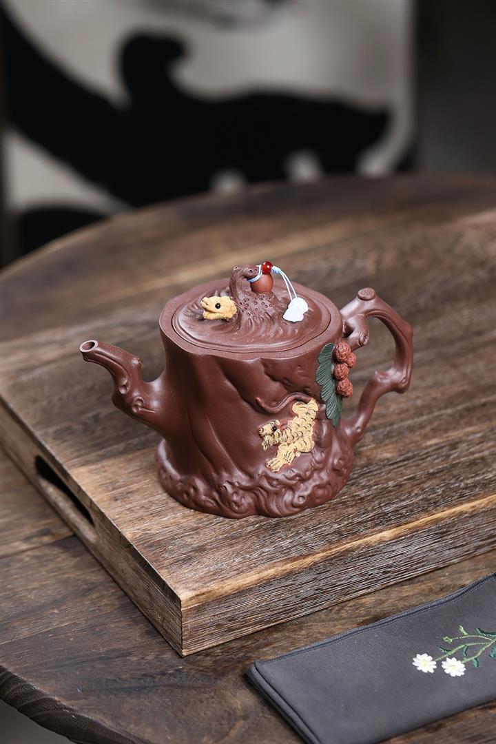 500cc原礦老紫泥松趣盤根泡茶壺POT8323