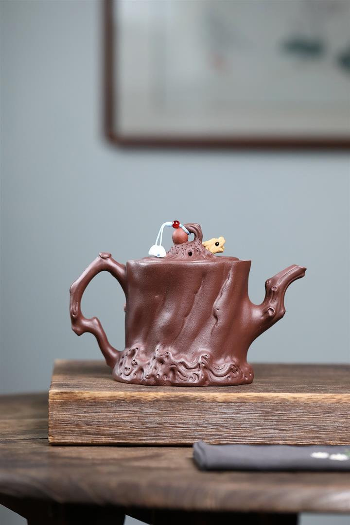 全手工大容量茶壺原礦紫茄泥銀杏樹樁泡茶壺pot3862