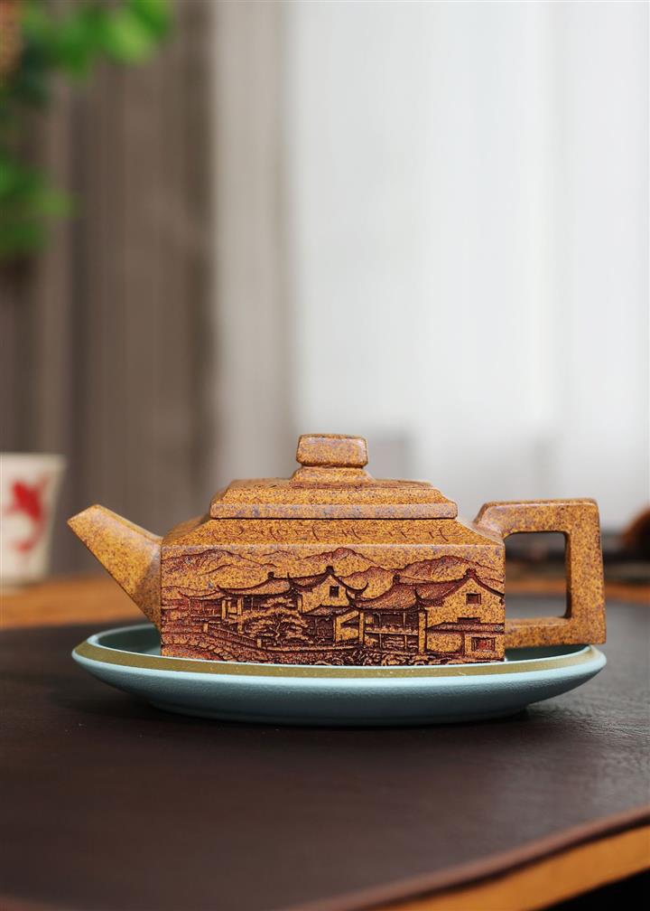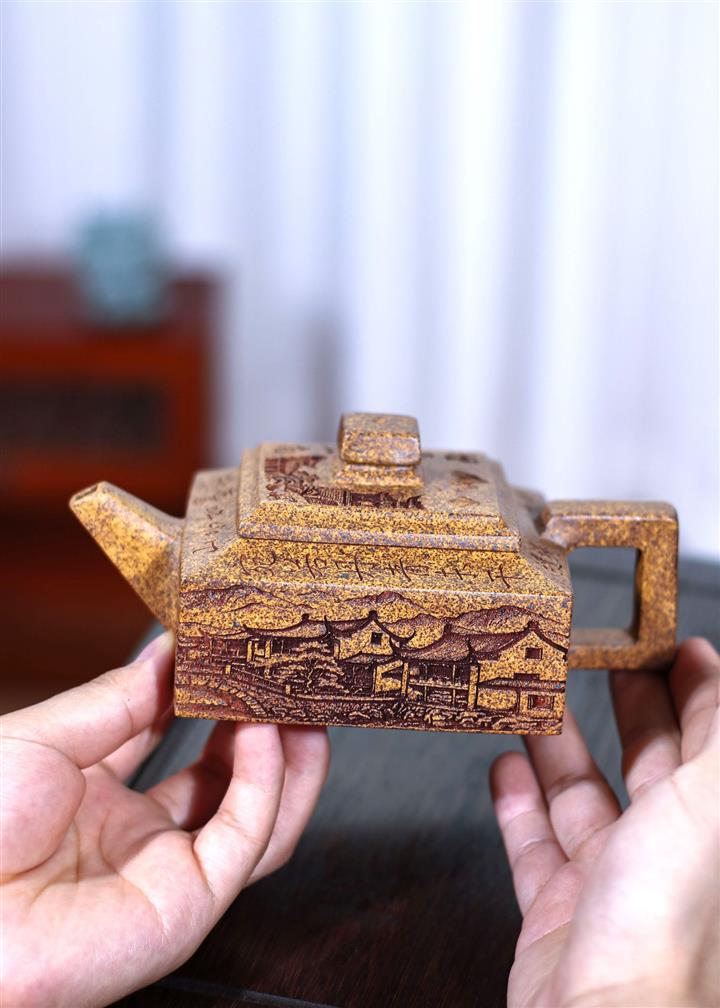 【作品介紹】此款壺形線條流暢,壺把,壺嘴,壺身壹氣呵成栩栩如生,是收藏把玩的好壺,泥料色澤古樸典雅,日久使用,漸露鋒芒,養成變化快,溫潤莊重,用其泡茶,使用的年代久,壺身就溫潤,泡出來的茶湯也就醇郁芳馨。