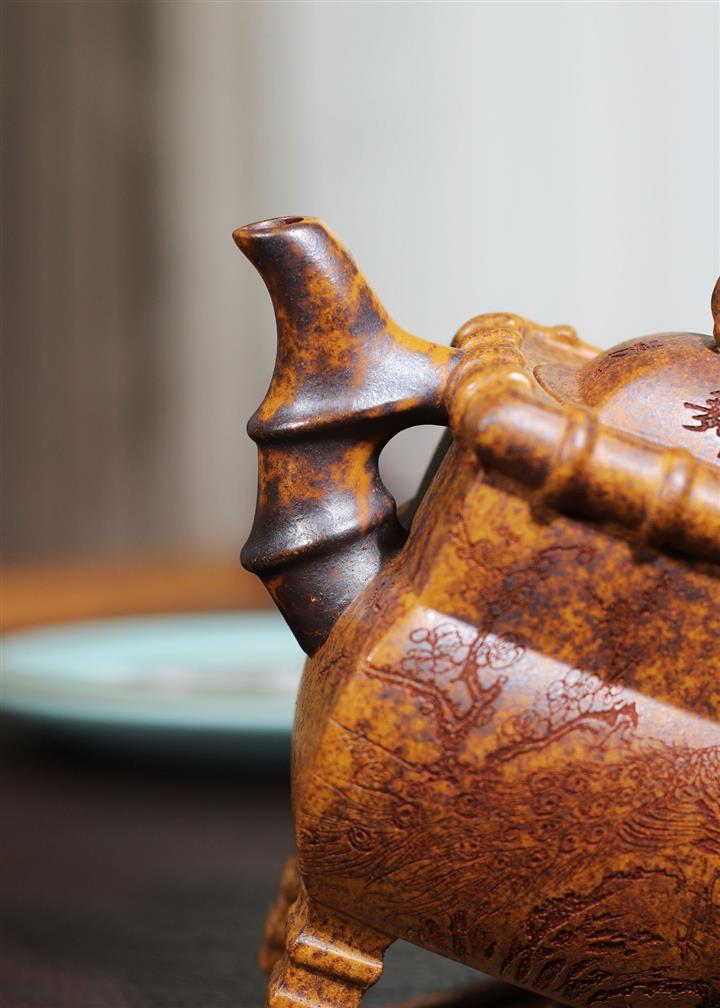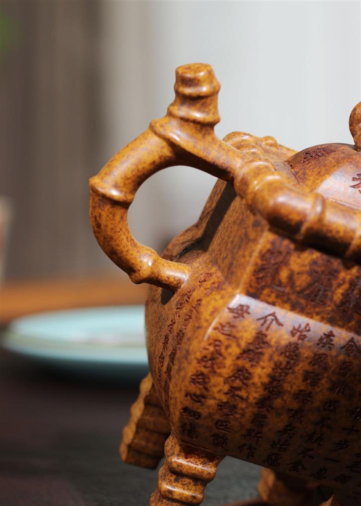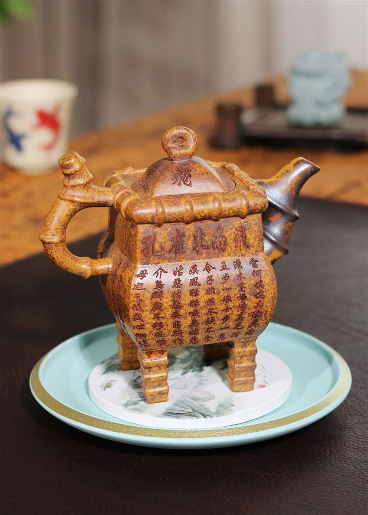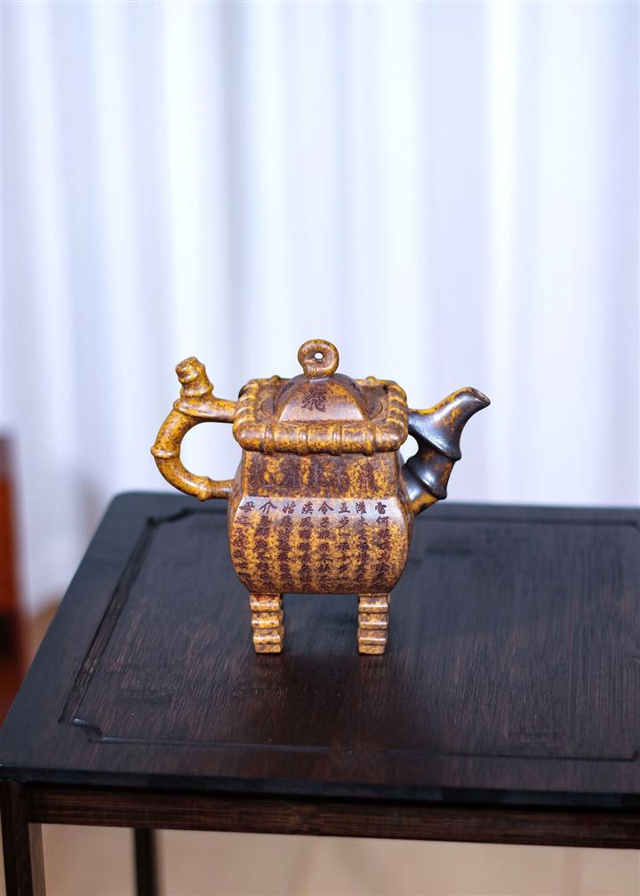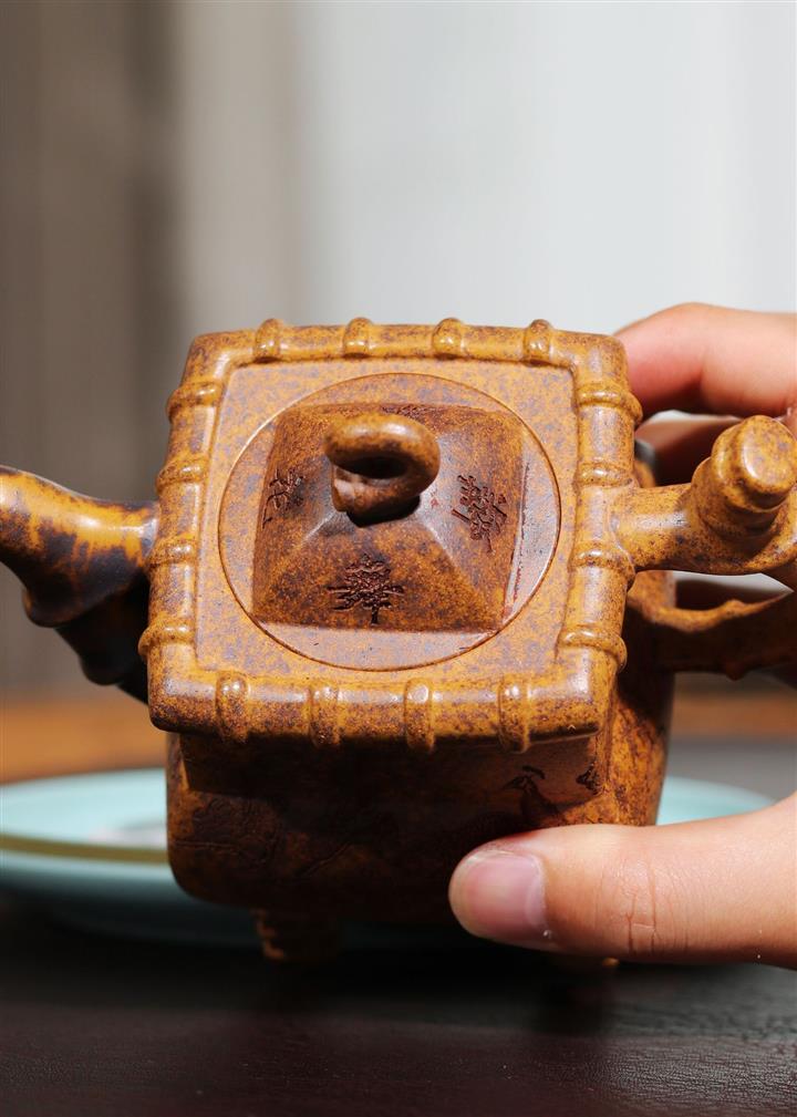 250cc龍骨金砂四方竹石孔雀東南飛茶壺POT8331