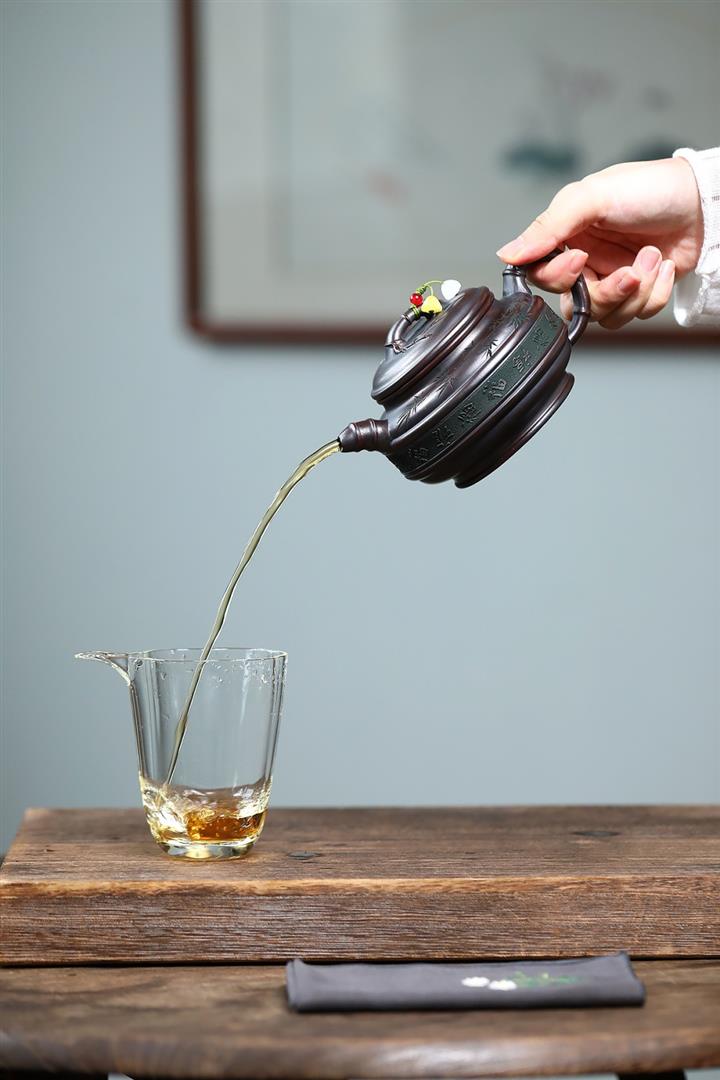 【泥料特點】砂土氣重,似淳實農民,日久使用,漸露鋒芒,養成變化,溫潤莊重。紫砂是壹種雙重氣孔結構的多孔性材質,氣孔微細,密度高。用紫砂壺沏茶,不失原味,且香不渙散,得茶之真香真味。紫砂使用越久,壺身色澤越發光亮照人,氣韻溫雅。紫砂壺長久使用器身會因撫摸擦拭,變得越發溫潤光澤。