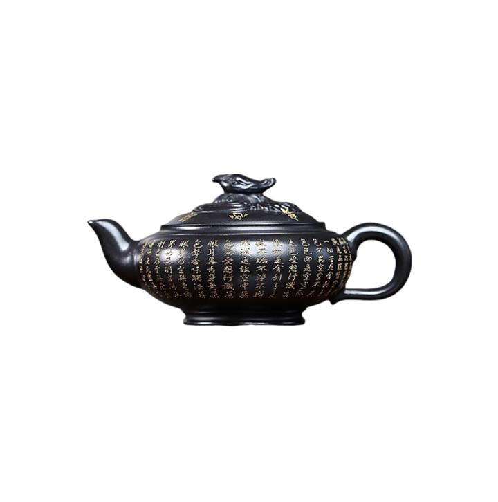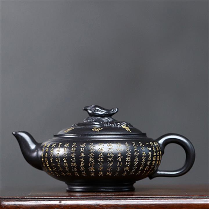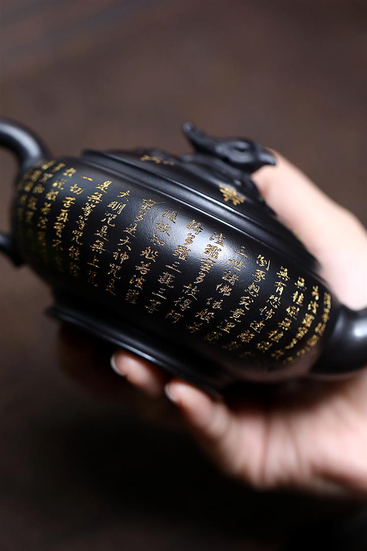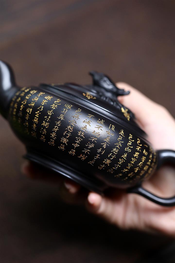 原礦百目紫泥描金文人掇只茶壺POT7814
