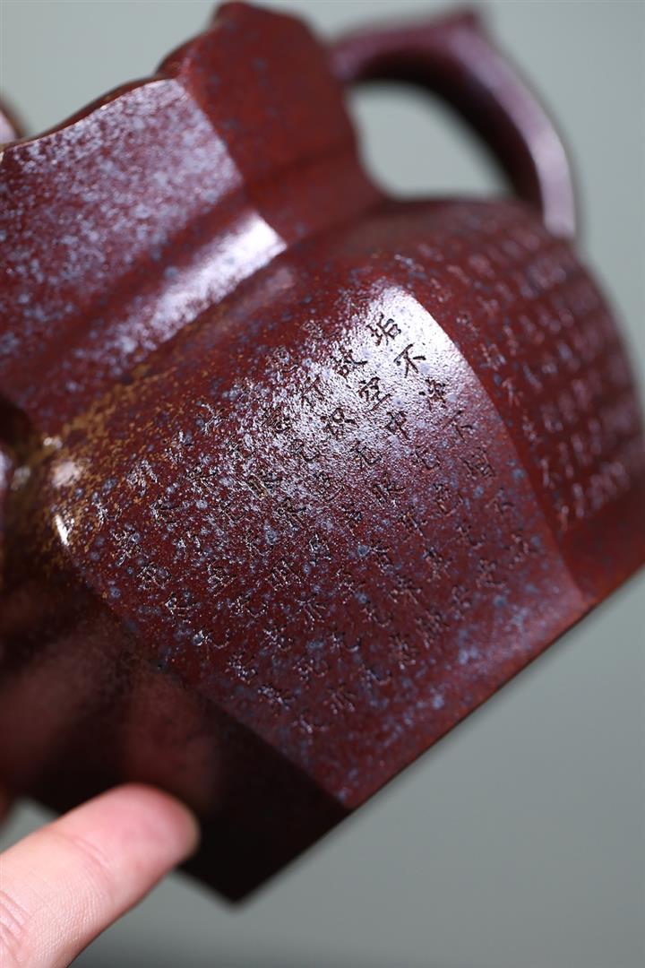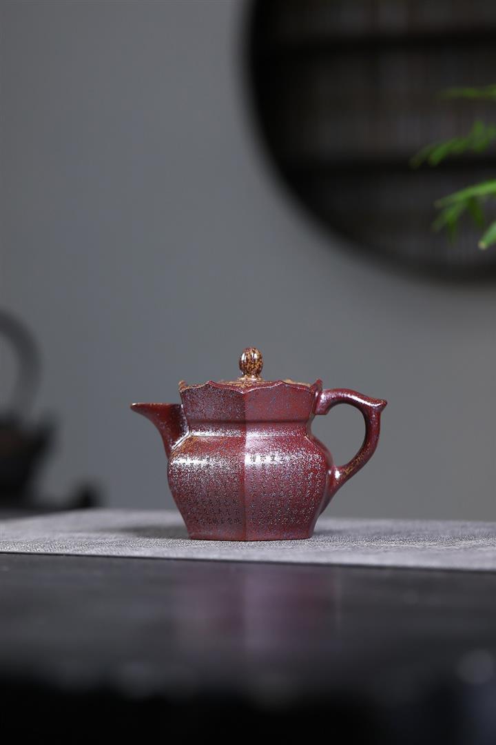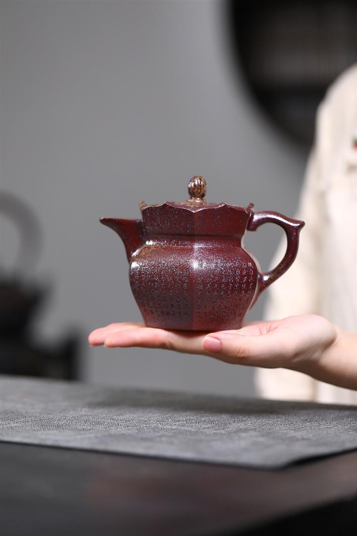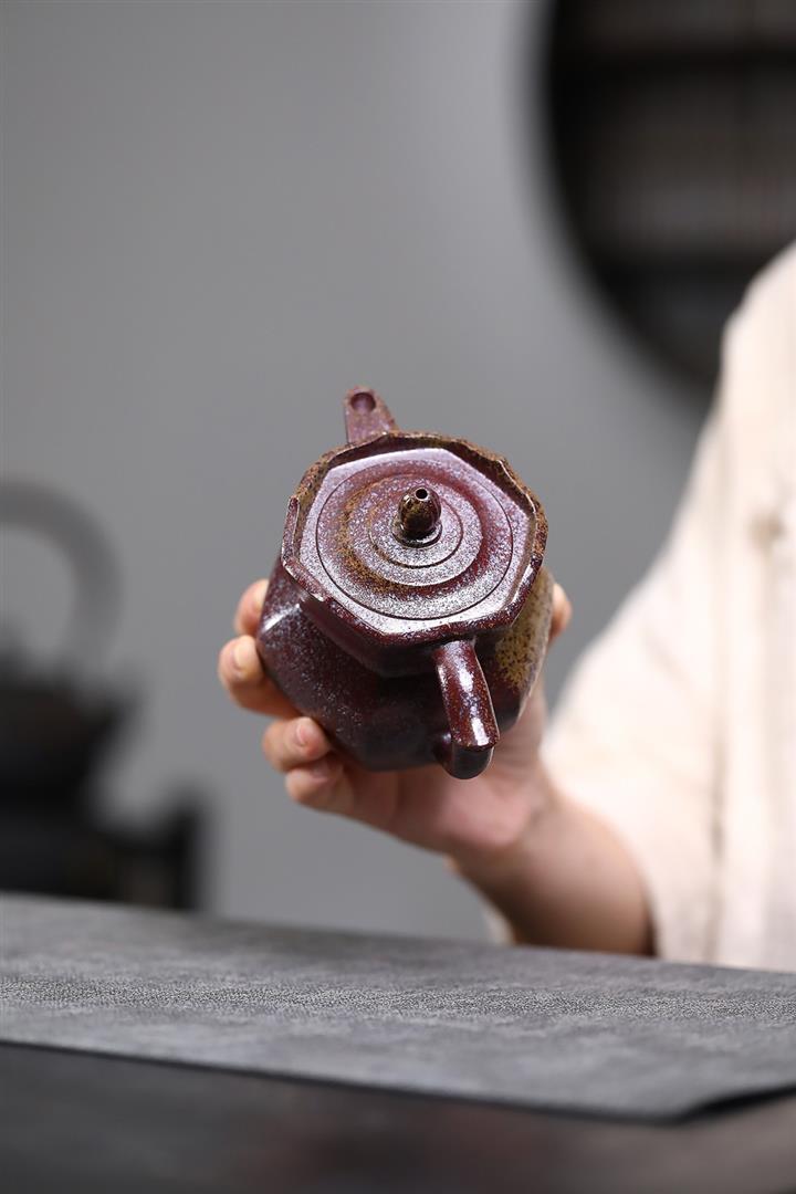【泥料特點】砂土氣重,似淳實農民,日久使用,漸露鋒芒,養成變化,溫潤莊重。紫砂是壹種雙重氣孔結構的多孔性材質,氣孔微細,密度高。用紫砂壺沏茶,不失原味,且香不渙散,得茶之真香真味。紫砂使用越久,壺身色澤越發光亮照人,氣韻溫雅。紫砂壺長久使用器身會因撫摸擦拭,變得越發溫潤光澤。