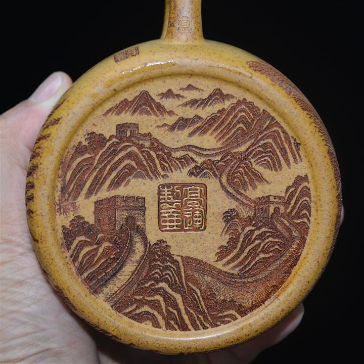 原礦降坡泥手刻觀山桑盤茶壺POT7138