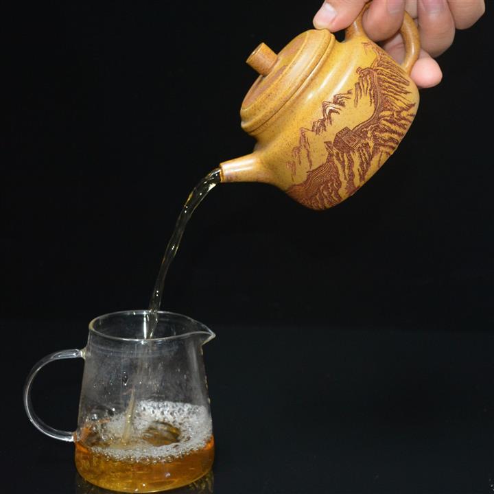 【泥料特點】砂土氣重,似淳實農民,日久使用,漸露鋒芒,養成變化,溫潤莊重。紫砂是壹種雙重氣孔結構的多孔性材質,氣孔微細,密度高。用紫砂壺沏茶,不失原味,且香不渙散,得茶之真香真味。紫砂使用越久,壺身色澤越發光亮照人,氣韻溫雅。紫砂壺長久使用器身會因撫摸擦拭,變得越發溫潤光澤。