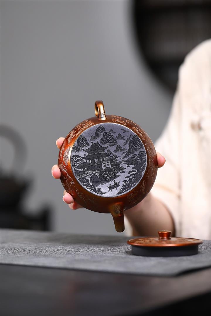 【作品介紹】此款壺形線條流暢,壺把,壺嘴,壺身壹氣呵成栩栩如生,是收藏把玩的好壺,泥料色澤古樸典雅,日久使用,漸露鋒芒,養成變化快,溫潤莊重,用其泡茶,使用的年代久,壺身就溫潤,泡出來的茶湯也就醇郁芳馨。