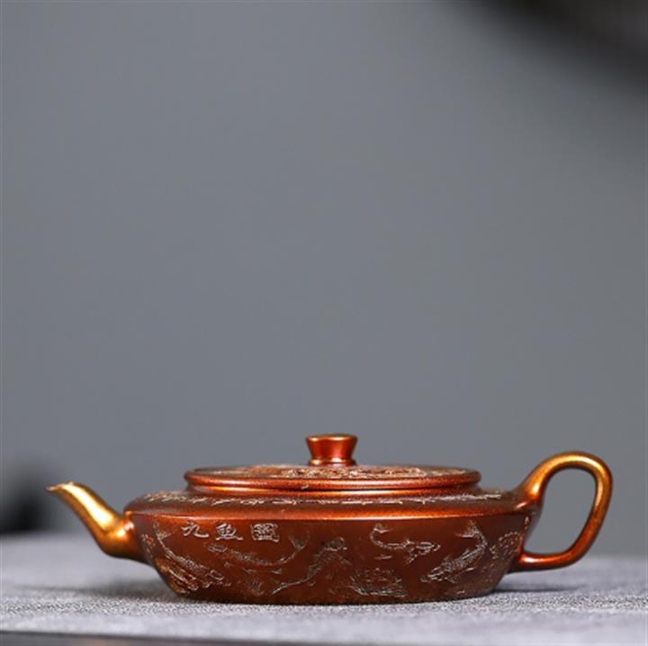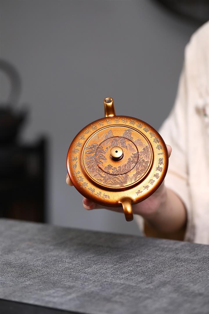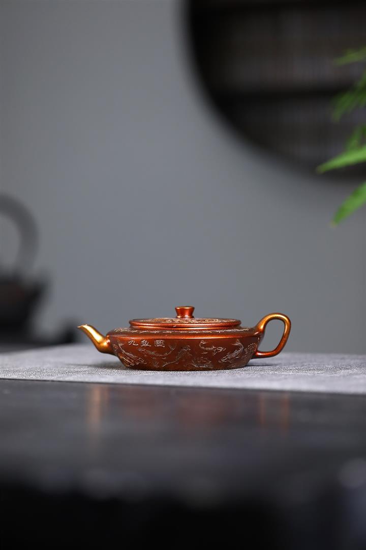 190cc原礦石黃泥貝殼燒金麟扁舟茶壺POT8401