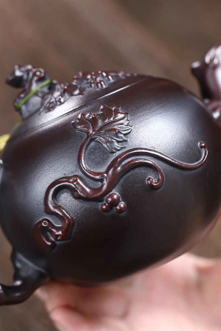 【作品介紹】此款壺形線條流暢,壺把,壺嘴,壺身壹氣呵成栩栩如生,是收藏把玩的好壺,泥料色澤古樸典雅,日久使用,漸露鋒芒,養成變化快,溫潤莊重,用其泡茶,使用的年代久,壺身就溫潤,泡出來的茶湯也就醇郁芳馨。