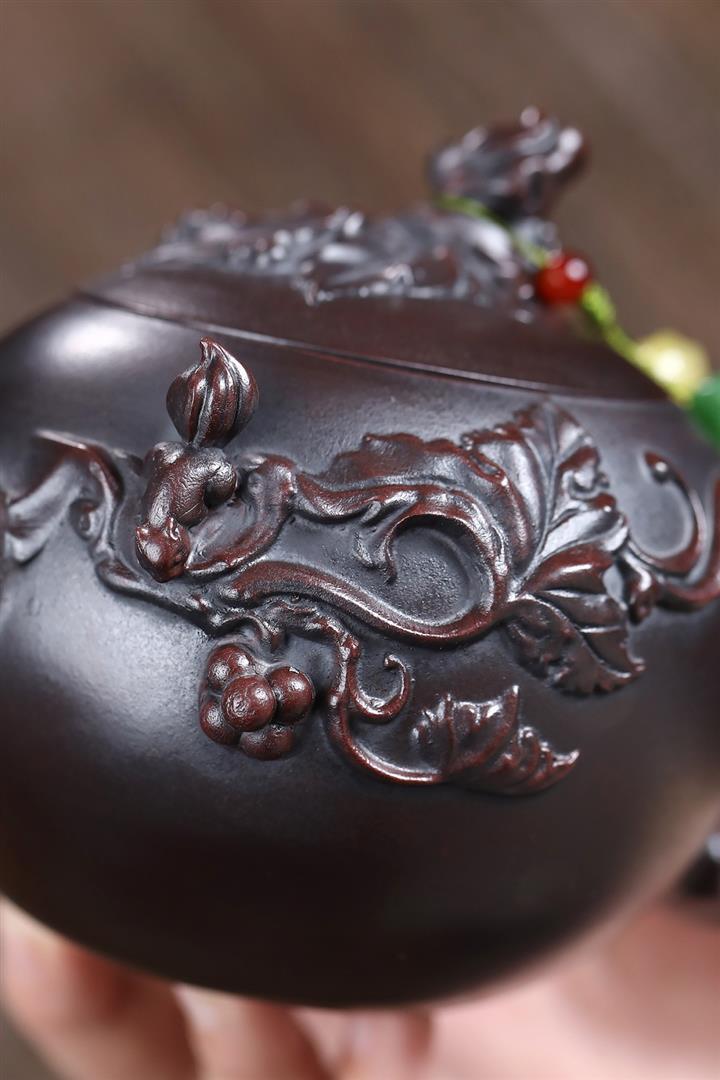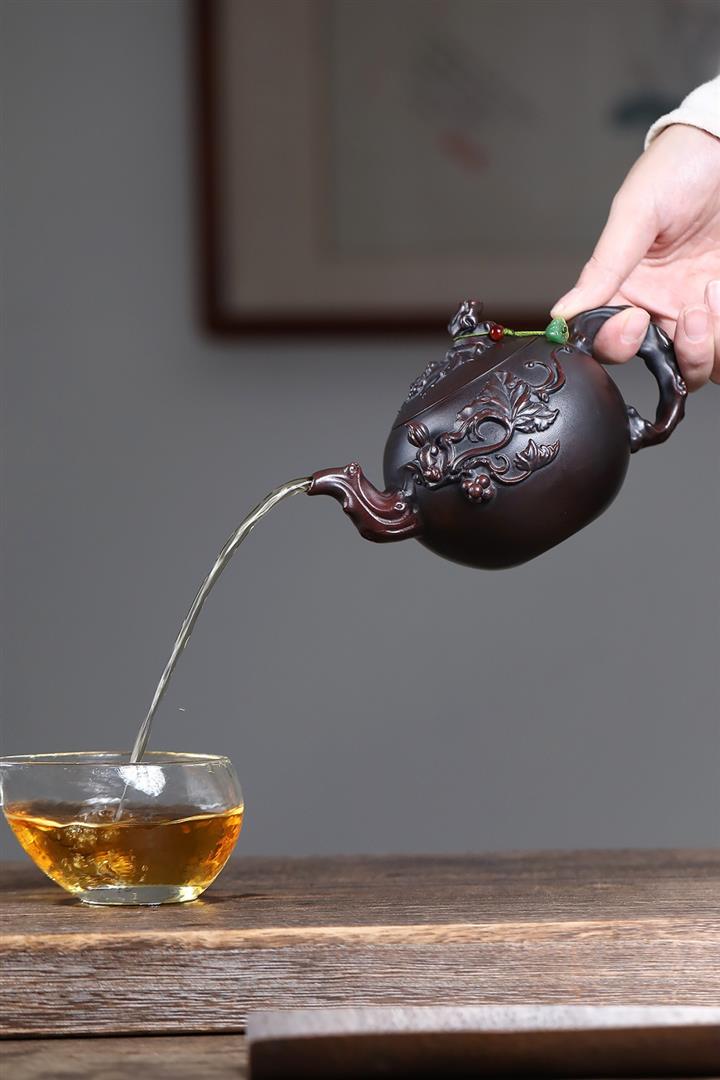 【泥料特點】砂土氣重,似淳實農民,日久使用,漸露鋒芒,養成變化,溫潤莊重。紫砂是壹種雙重氣孔結構的多孔性材質,氣孔微細,密度高。用紫砂壺沏茶,不失原味,且香不渙散,得茶之真香真味。紫砂使用越久,壺身色澤越發光亮照人,氣韻溫雅。紫砂壺長久使用器身會因撫摸擦拭,變得越發溫潤光澤。