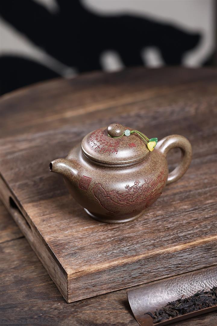 原礦紅降坡太湖石漢瓦紫砂壺POT4623
