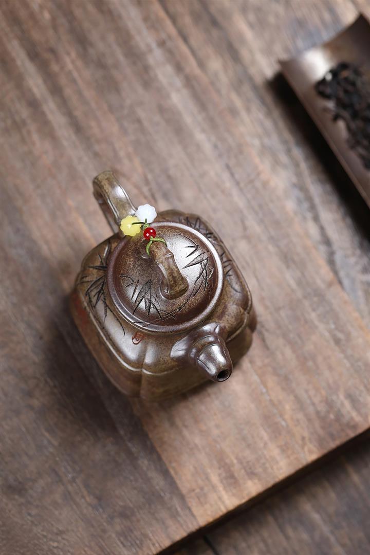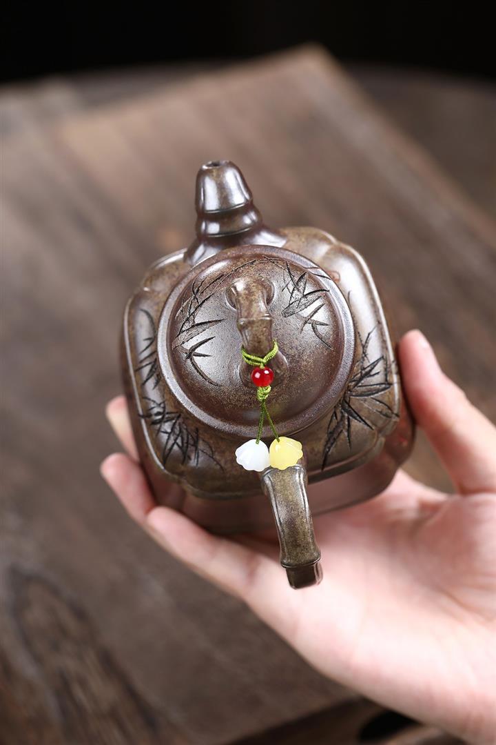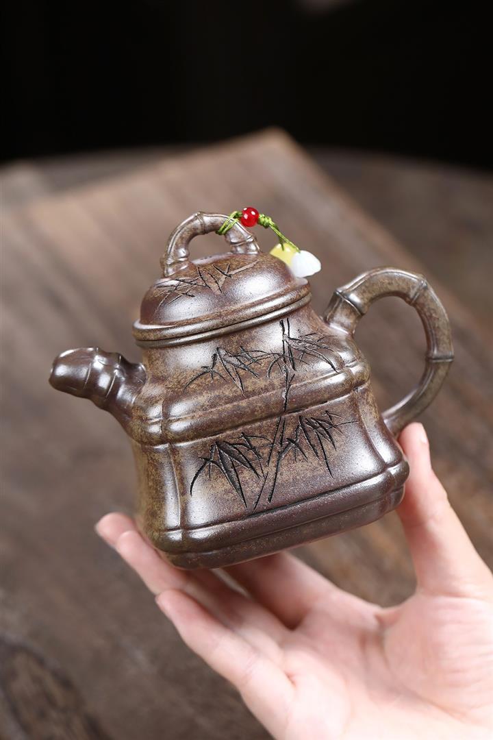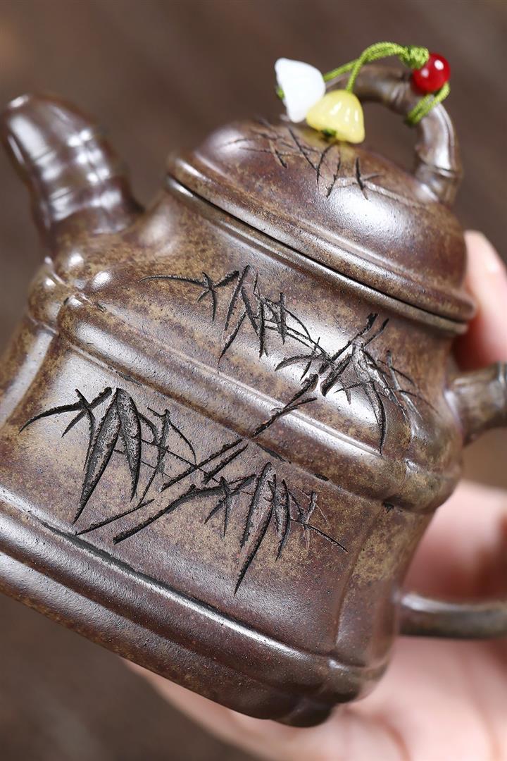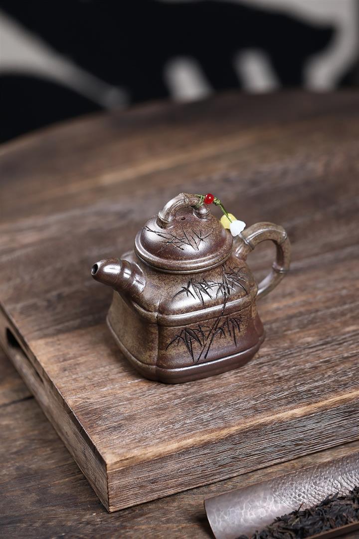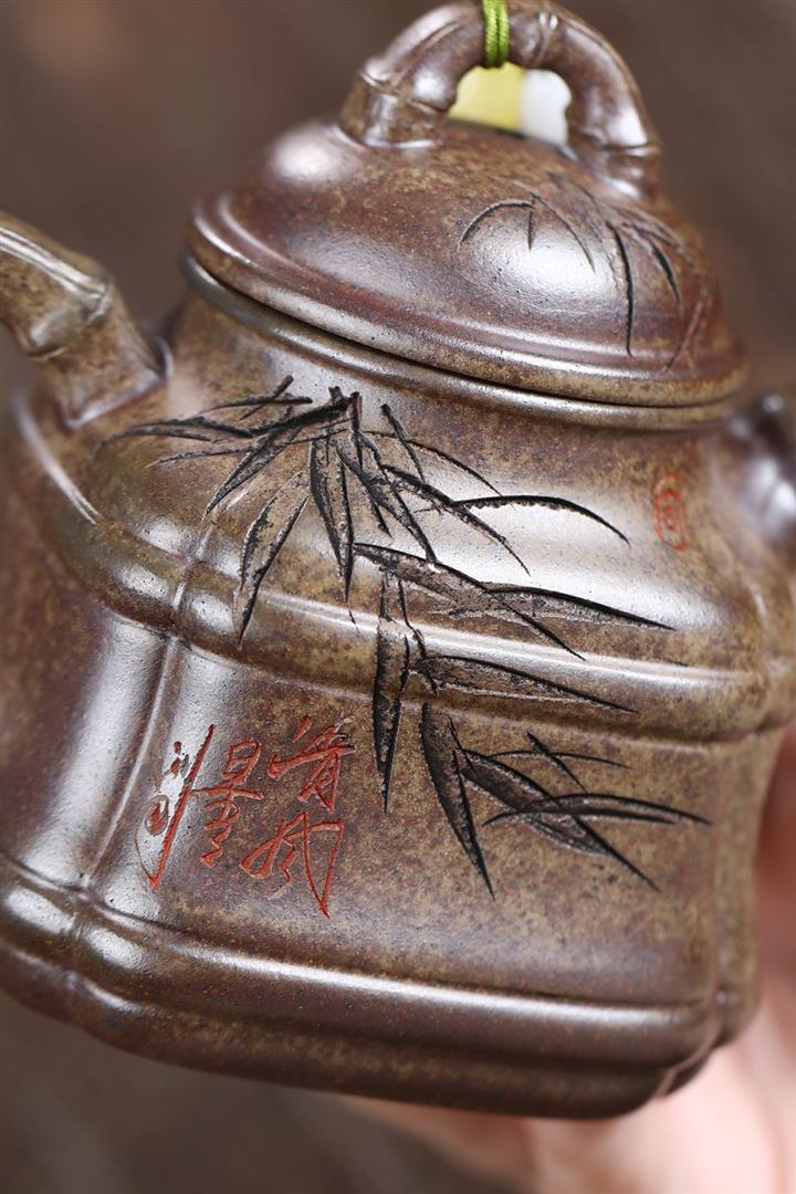 300cc原礦柴燒沈香泥沈煙翠影竹鼎壺POT8430