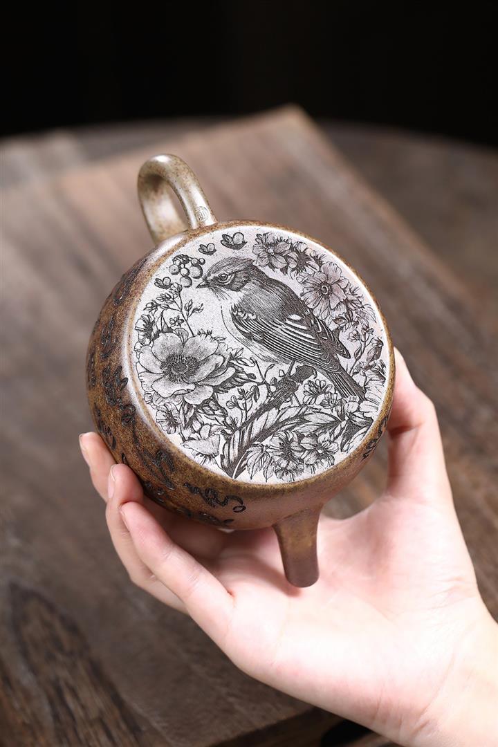 原礦玄鐵石黃三足乳鼎茶壺POT6849