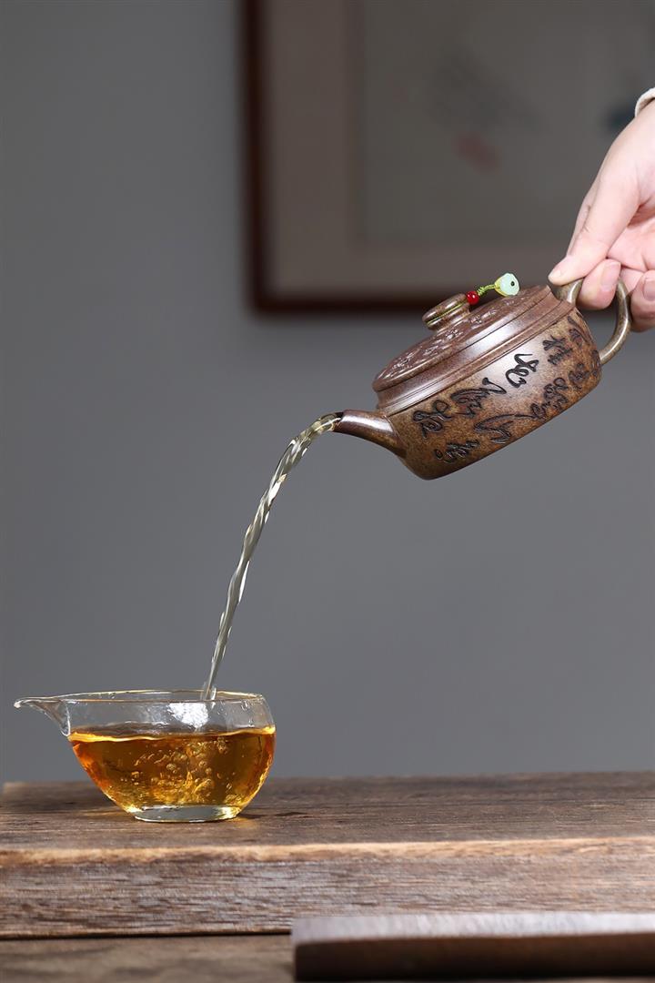 【泥料特點】砂土氣重,似淳實農民,日久使用,漸露鋒芒,養成變化,溫潤莊重。紫砂是壹種雙重氣孔結構的多孔性材質,氣孔微細,密度高。用紫砂壺沏茶,不失原味,且香不渙散,得茶之真香真味。紫砂使用越久,壺身色澤越發光亮照人,氣韻溫雅。紫砂壺長久使用器身會因撫摸擦拭,變得越發溫潤光澤。
