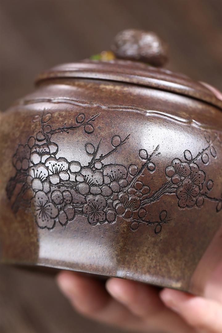 400cc原礦沈香泥柴燒龍吟鹿鳴宮燈壺POT8437