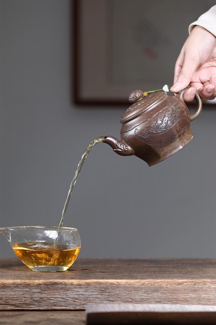 紫砂壺手工茶壺家藏大紅袍雲龍潘龍壺POT1851