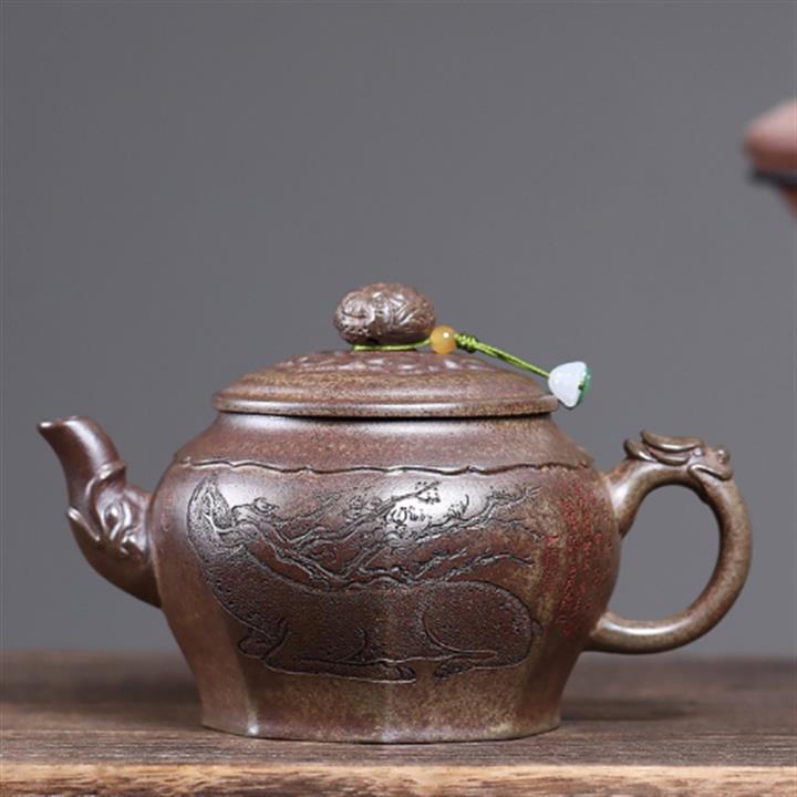 原礦降坡泥紫砂壺三足龍影茶壺POT1846