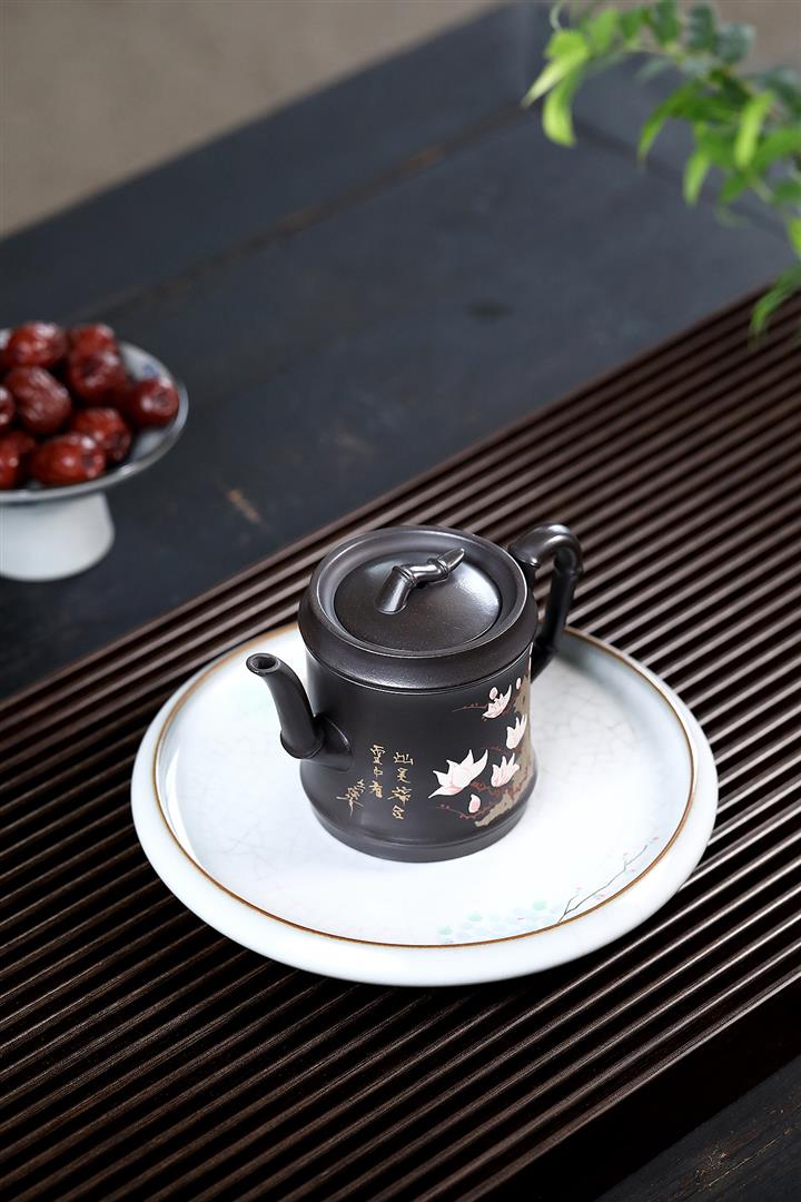 原礦老紫泥手工雪花汲直茶壺POT6559