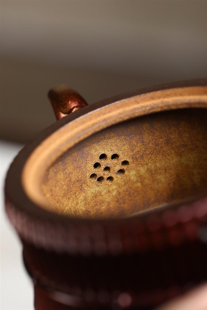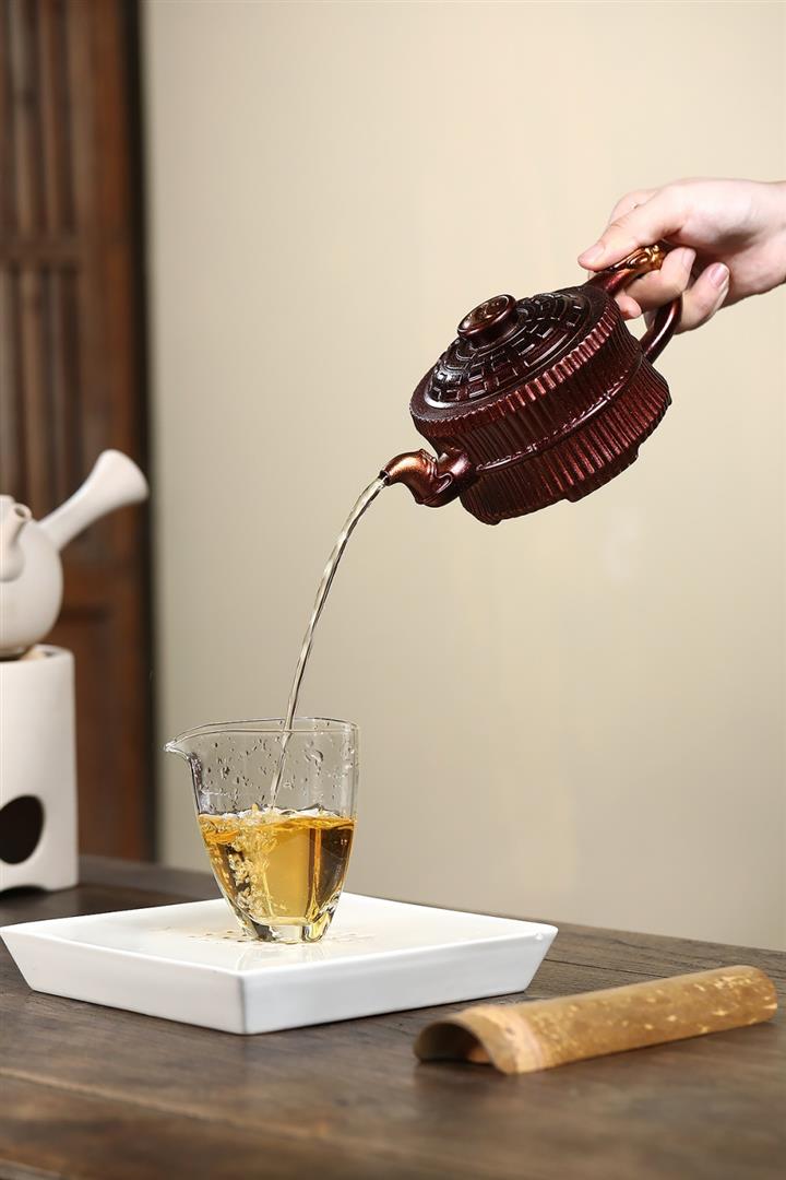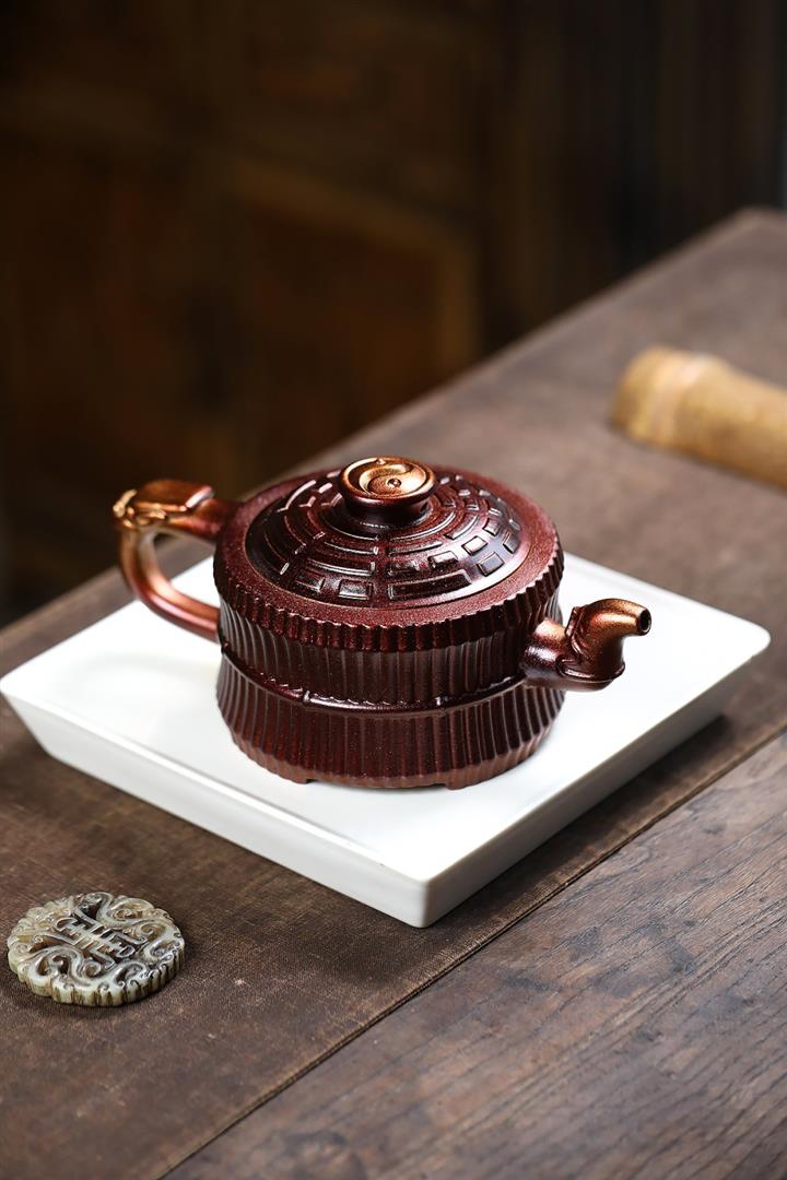 【泥料特點】砂土氣重,似淳實農民,日久使用,漸露鋒芒,養成變化,溫潤莊重。紫砂是壹種雙重氣孔結構的多孔性材質,氣孔微細,密度高。用紫砂壺沏茶,不失原味,且香不渙散,得茶之真香真味。紫砂使用越久,壺身色澤越發光亮照人,氣韻溫雅。紫砂壺長久使用器身會因撫摸擦拭,變得越發溫潤光澤。