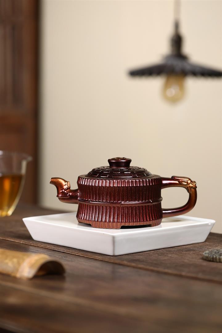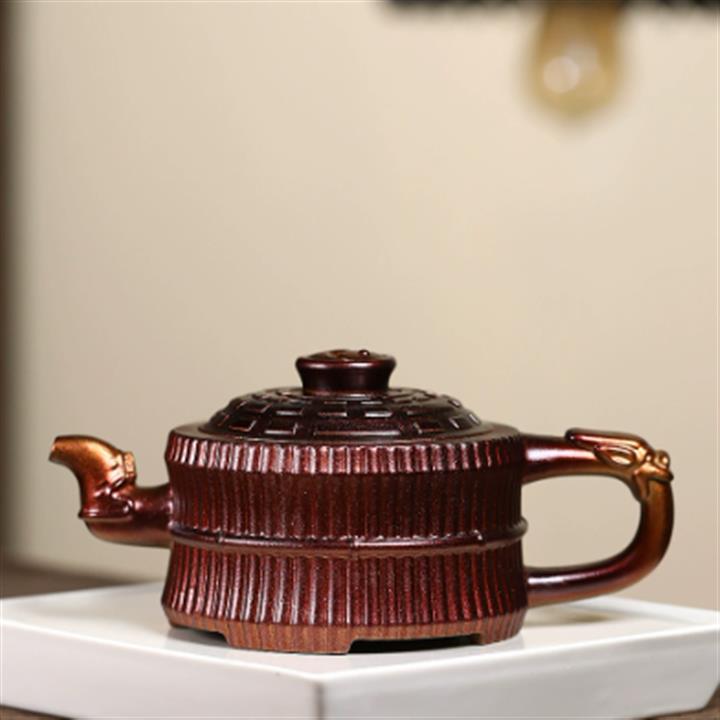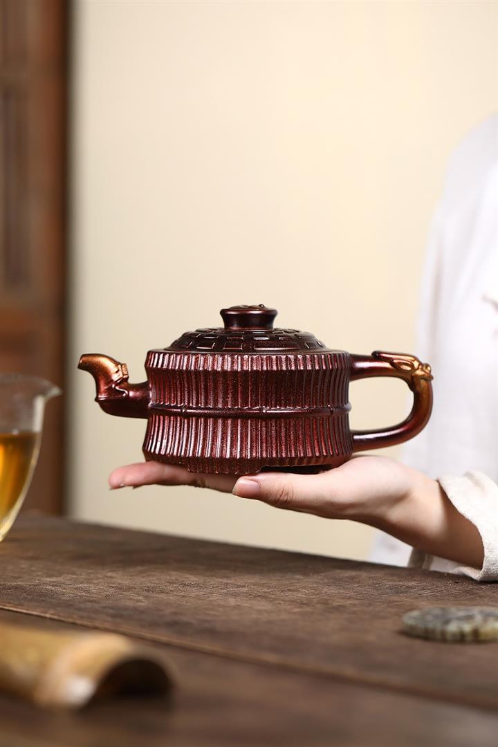 250cc原礦紅清水泥雙國工合作高竹茶壺POT8057