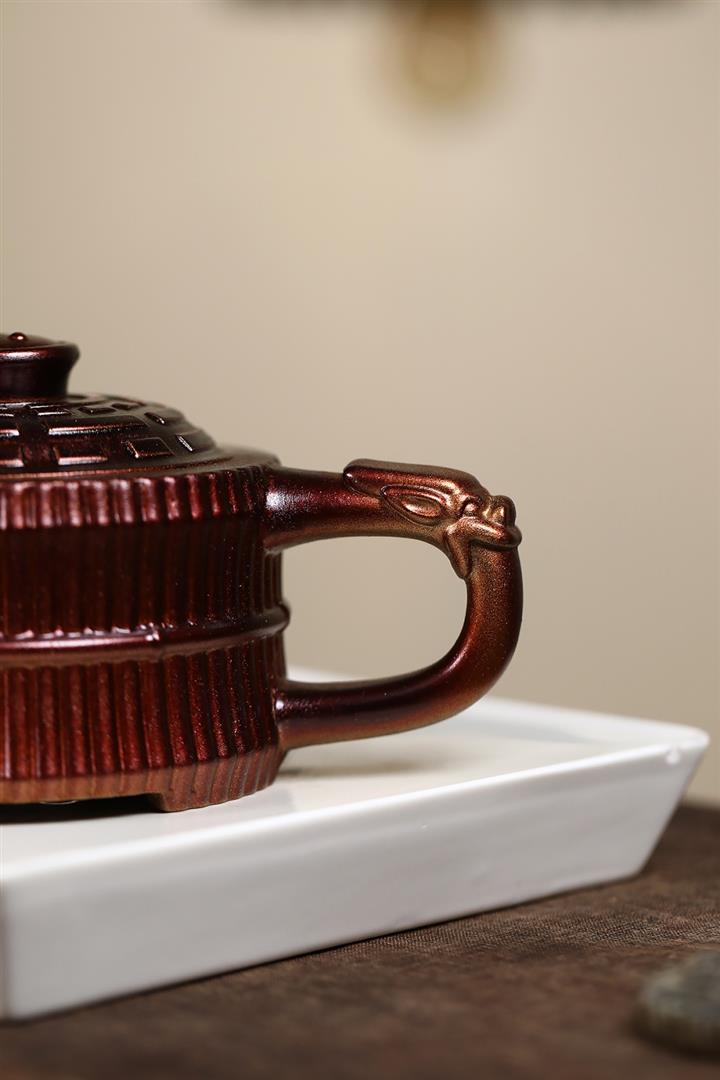 【作品介紹】此款壺形線條流暢,壺把,壺嘴,壺身壹氣呵成栩栩如生,是收藏把玩的好壺,泥料色澤古樸典雅,日久使用,漸露鋒芒,養成變化快,溫潤莊重,用其泡茶,使用的年代久,壺身就溫潤,泡出來的茶湯也就醇郁芳馨。